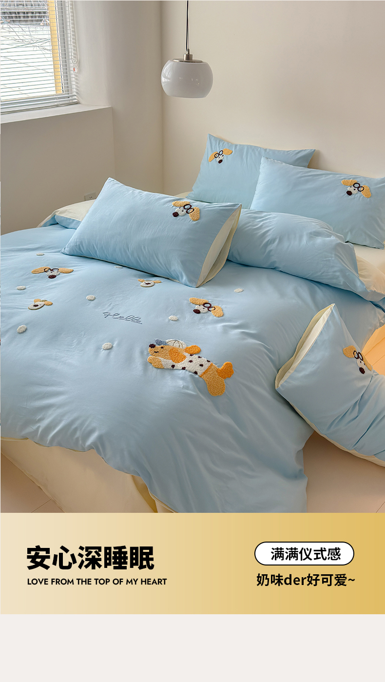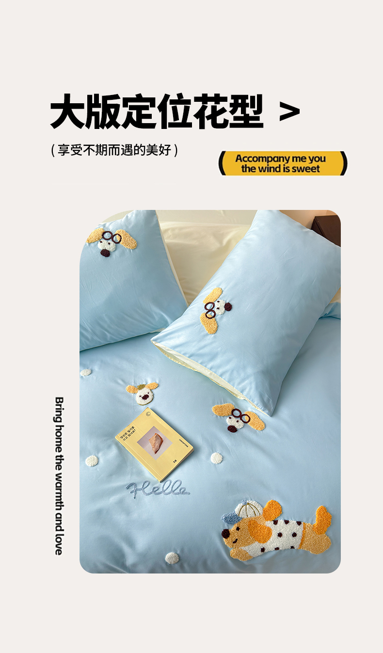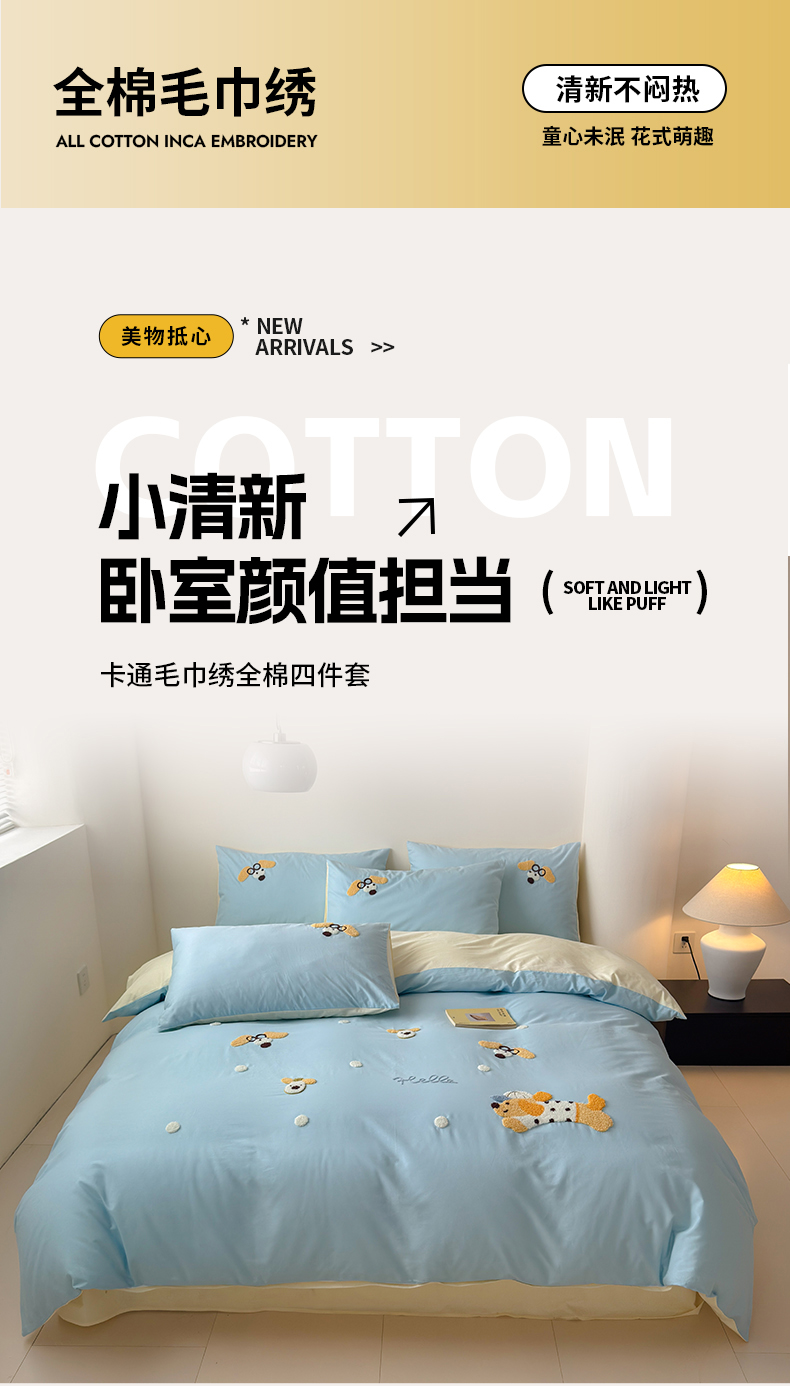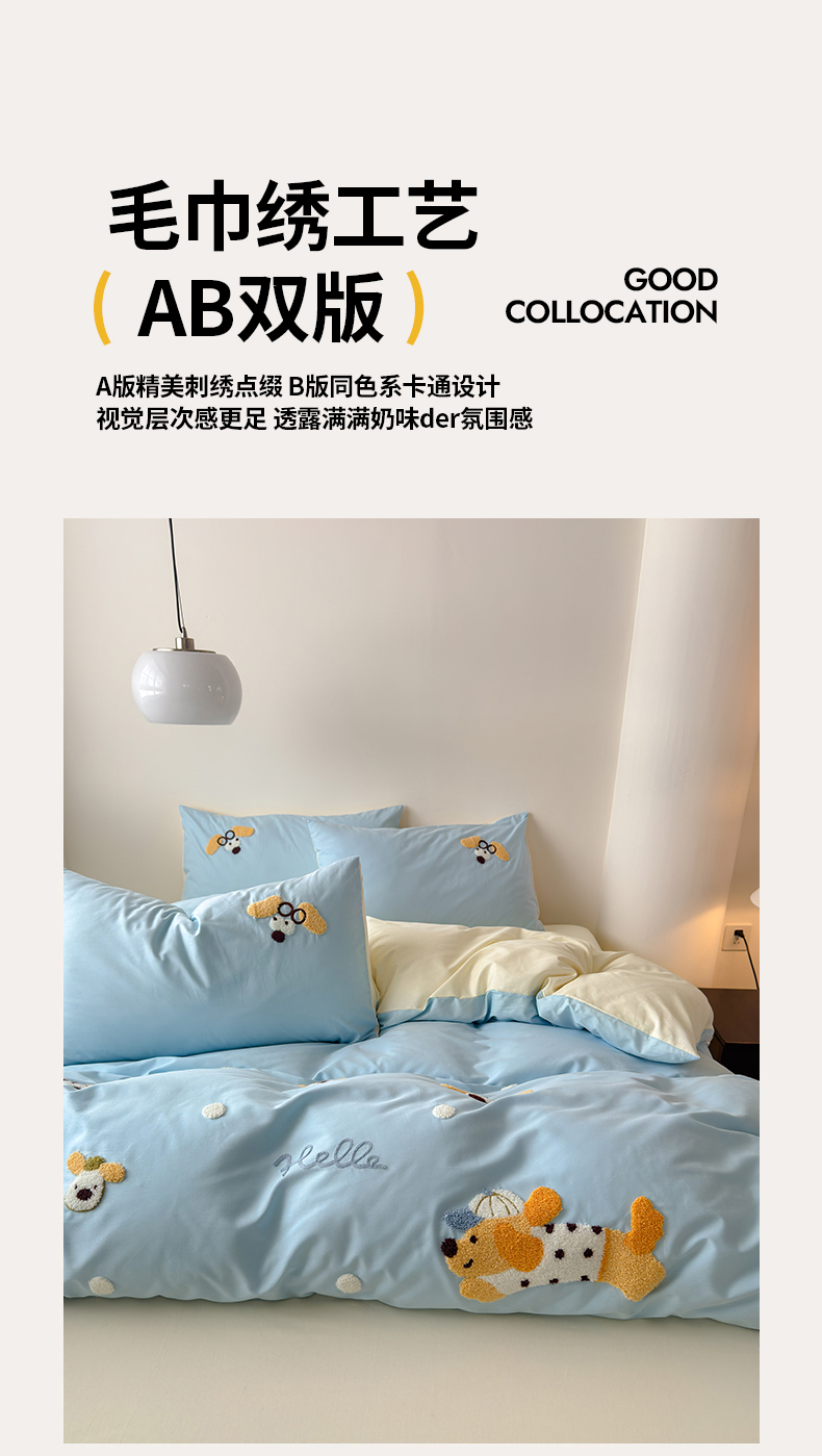 当前位置: 91家纺网 > 商品网购 > 床品套件 > 四件套 > 全棉普通四件套 > 锦觅家纺 2025新款卡通小清新毛巾绣全棉纯棉四件套(大版定位花型) 奔跑的狗狗