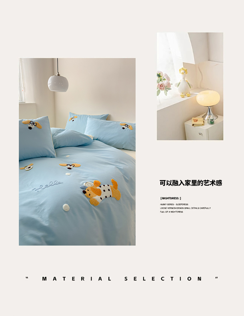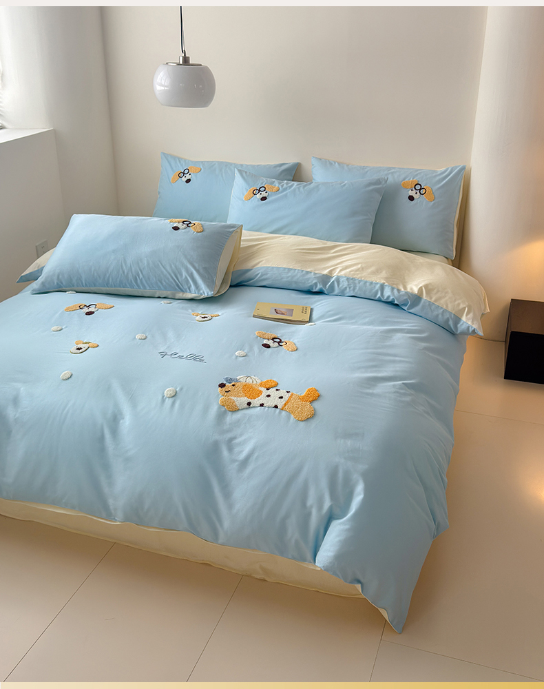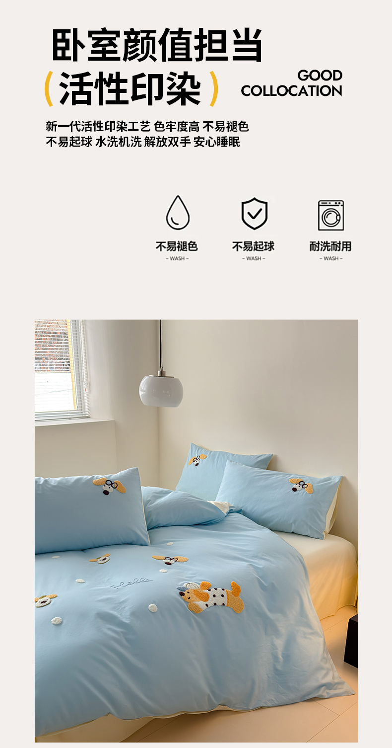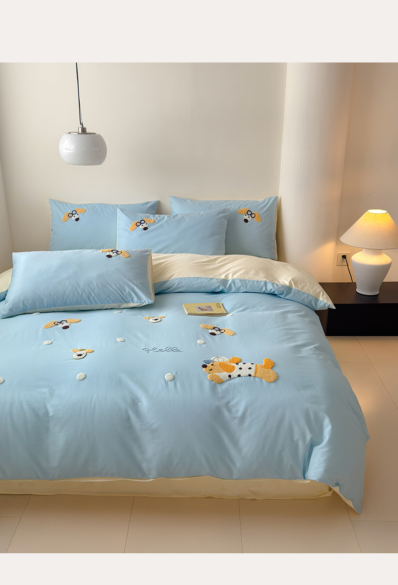 当前位置: 91家纺网 > 商品网购 > 床品套件 > 四件套 > 全棉普通四件套 > 锦觅家纺 2025新款卡通小清新毛巾绣全棉纯棉四件套(大版定位花型) 奔跑的狗狗