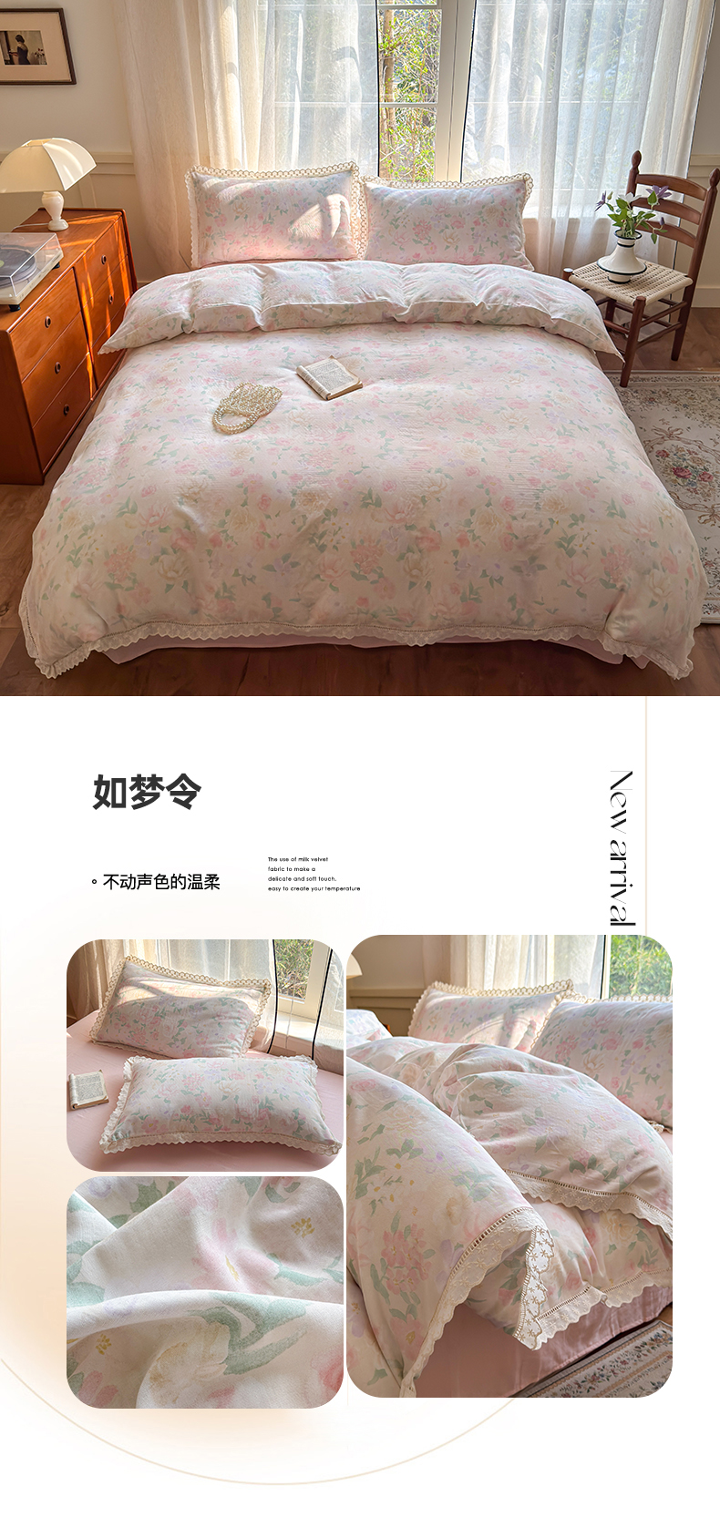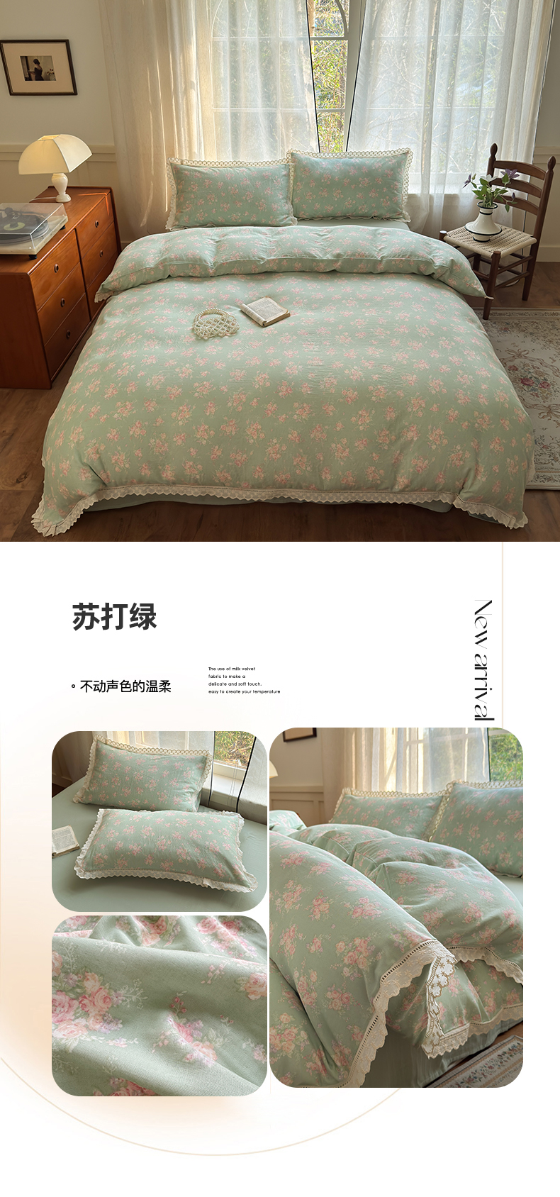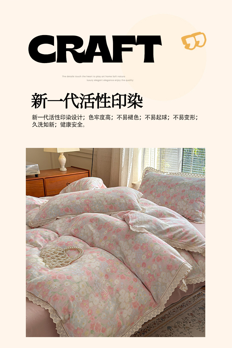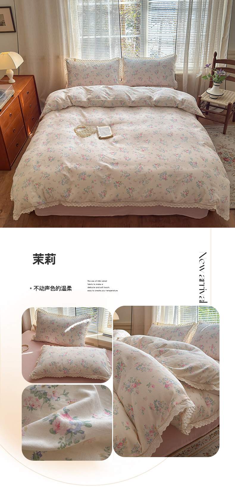 (总)曼之夏 2025新款A类全棉双层纱花边四件套,春风里,恩彩,观夏,丽莎,洛神玫瑰,茉莉,如梦令,苏打绿,晚香玉,郁金香