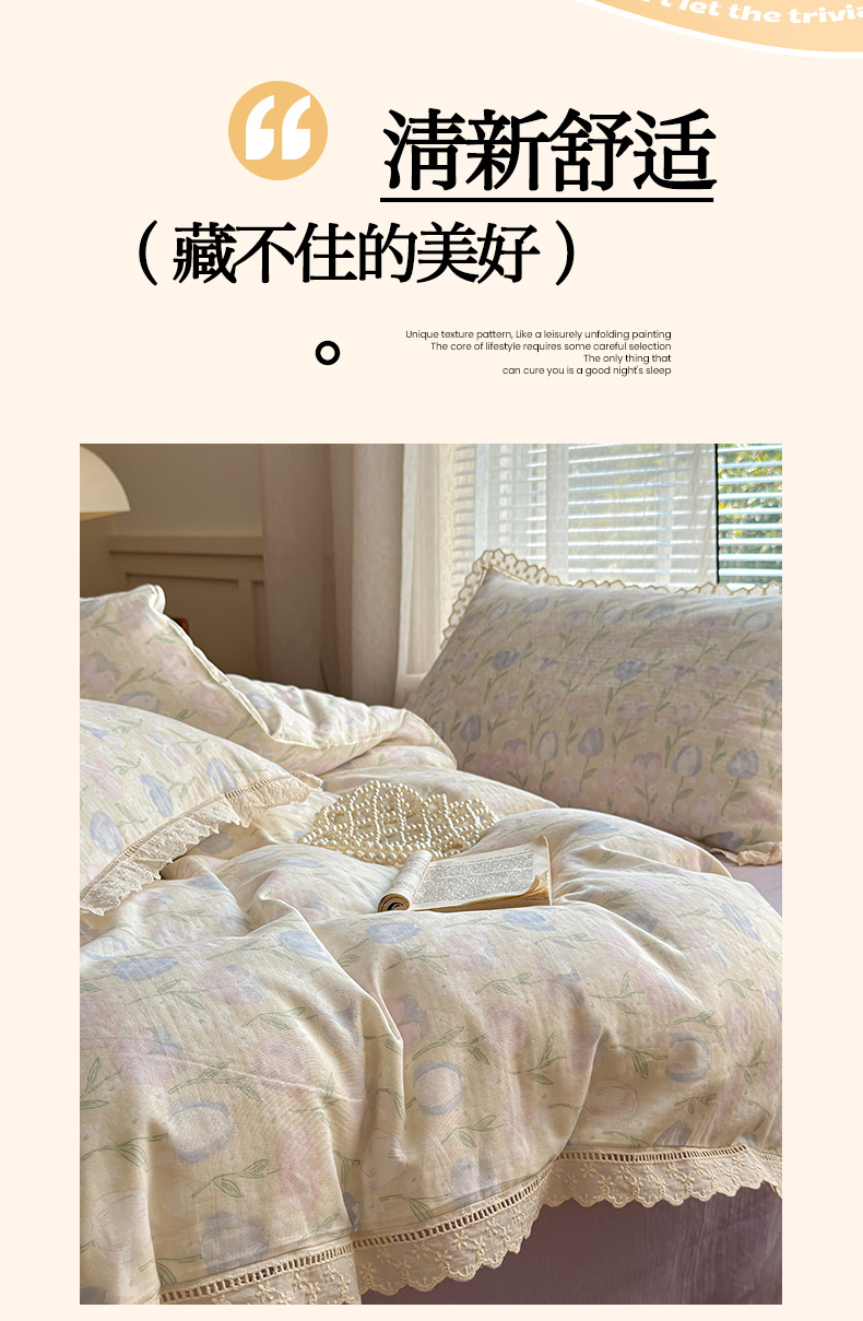(总)曼之夏 2025新款A类全棉双层纱花边四件套,春风里,恩彩,观夏,丽莎,洛神玫瑰,茉莉,如梦令,苏打绿,晚香玉,郁金香