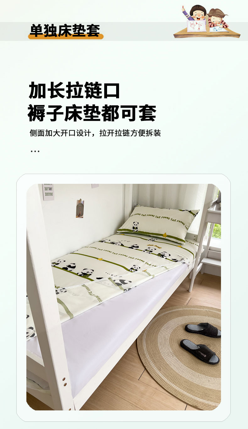 • 91家纺网 家纺一手货源 找家纺 宅部落 2025新款全棉学生宿舍褥子套纯棉床垫套单床笠 熊猫派对