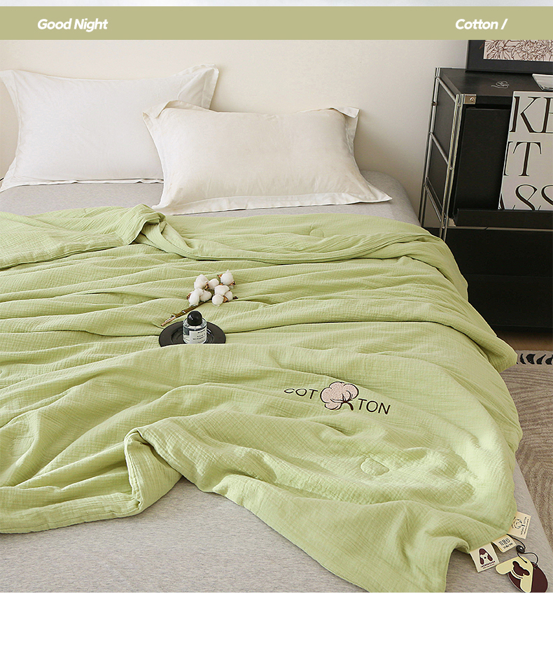 2025新款A类全棉双层皱皱纱立体烫画纯色款大豆夏凉被空调被 绉绉-草绿