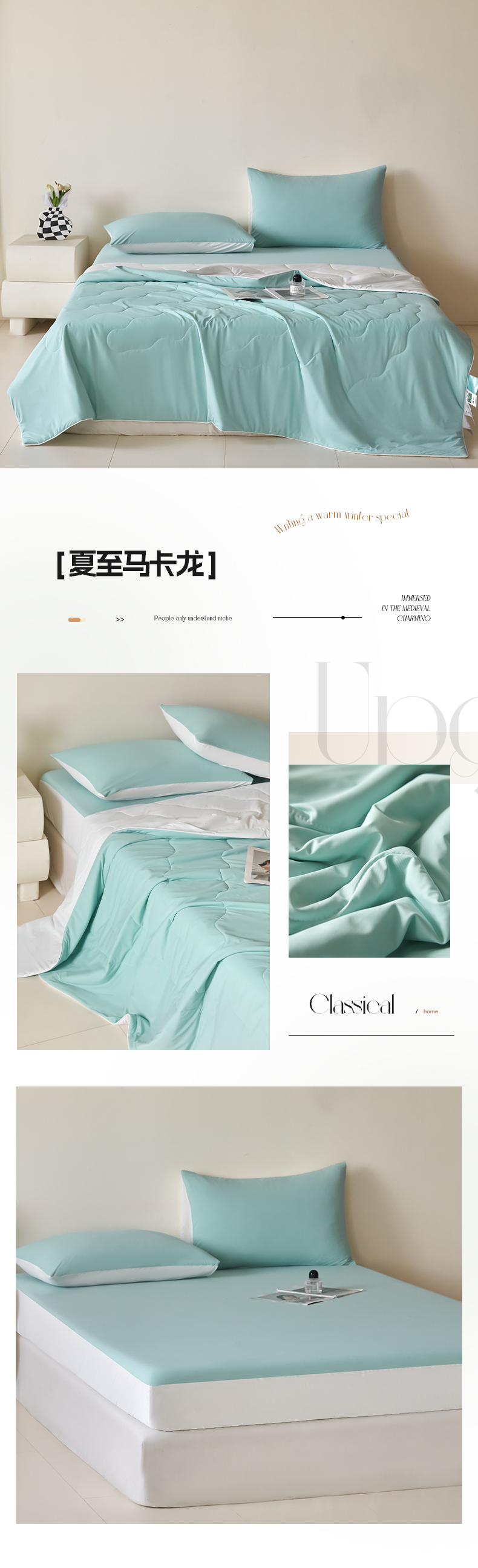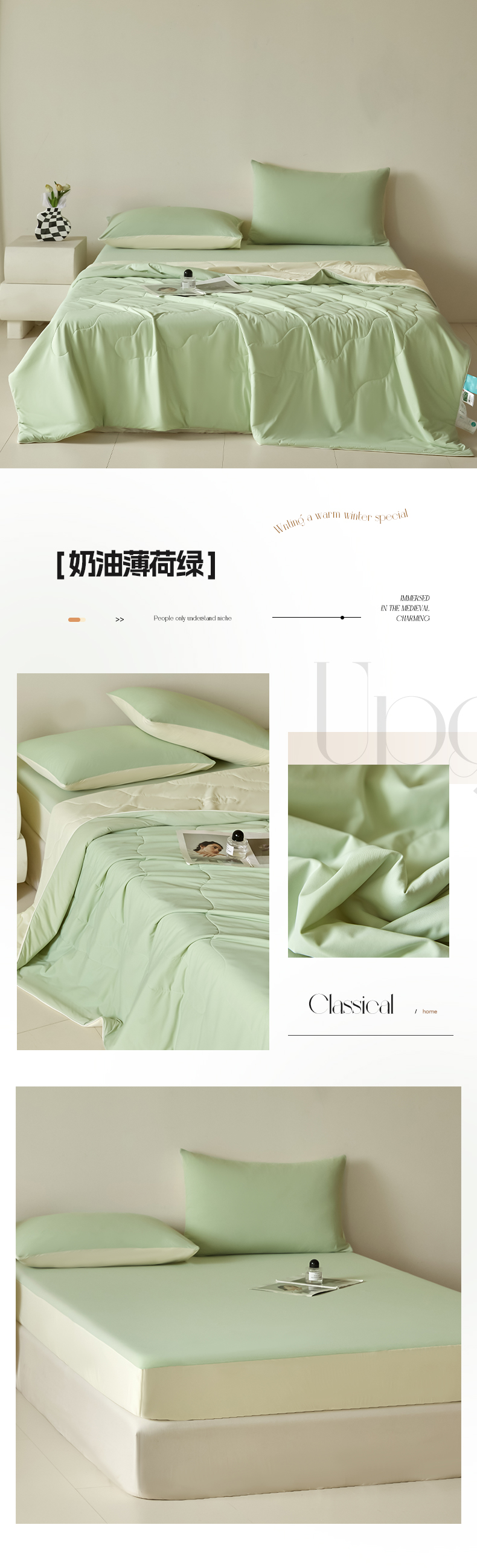 商品名称:圣梦莱羽绒家纺 2025春夏新款A类锦氨凉感丝高克重冰丝夏凉被亲肤丝绸被芯 奶油薄荷绿