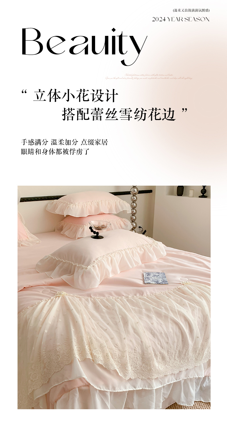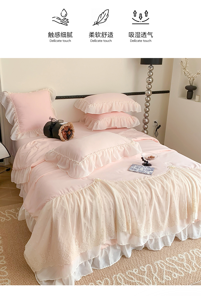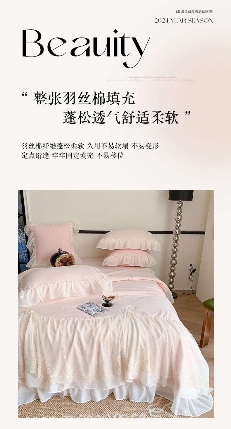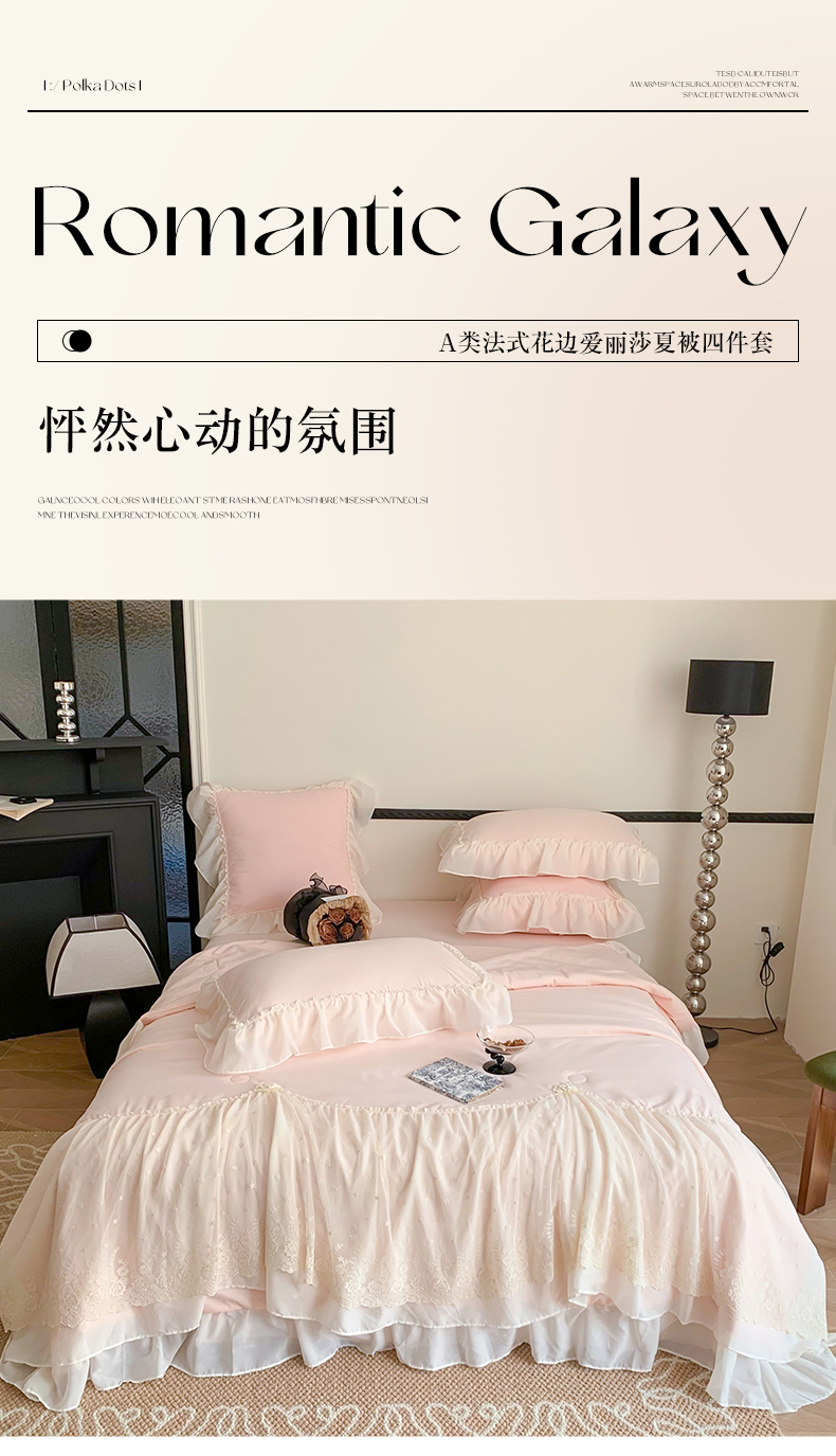 商品名称:2025新款A类法式花边爱丽莎夏被夏凉被空调被四件套 爱丽莎粉