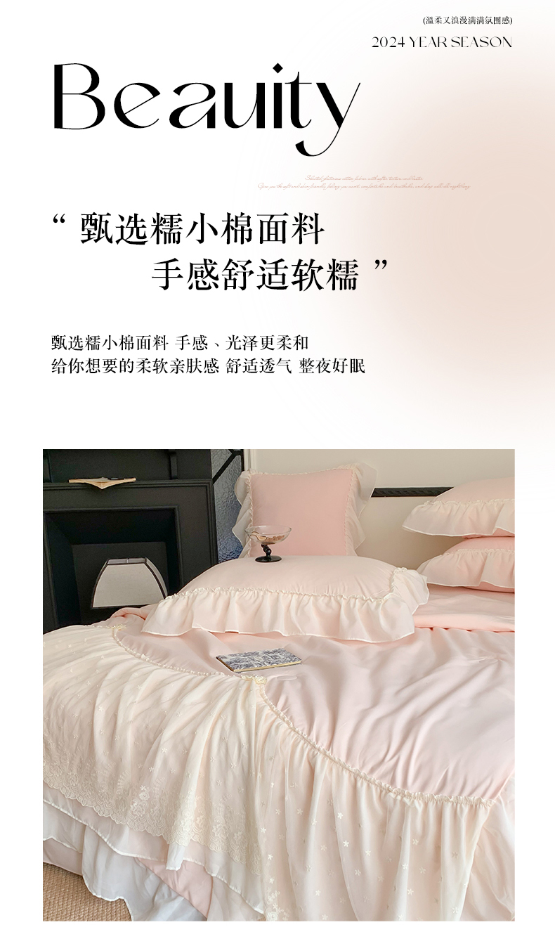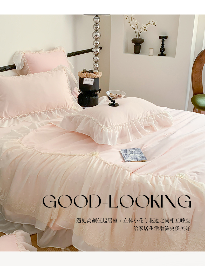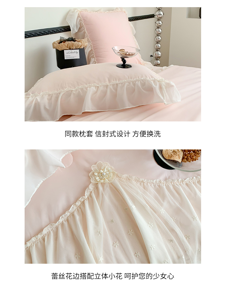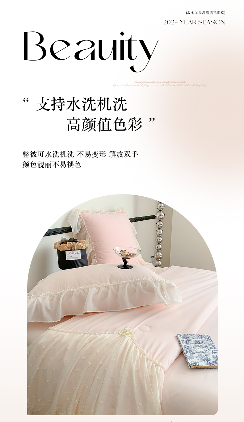 商品名称:2025新款A类法式花边爱丽莎夏被夏凉被空调被四件套 爱丽莎粉