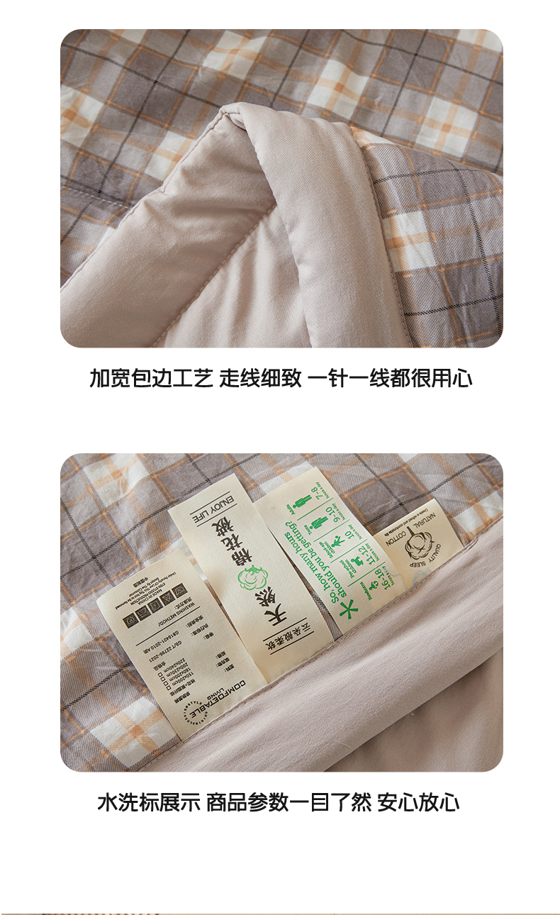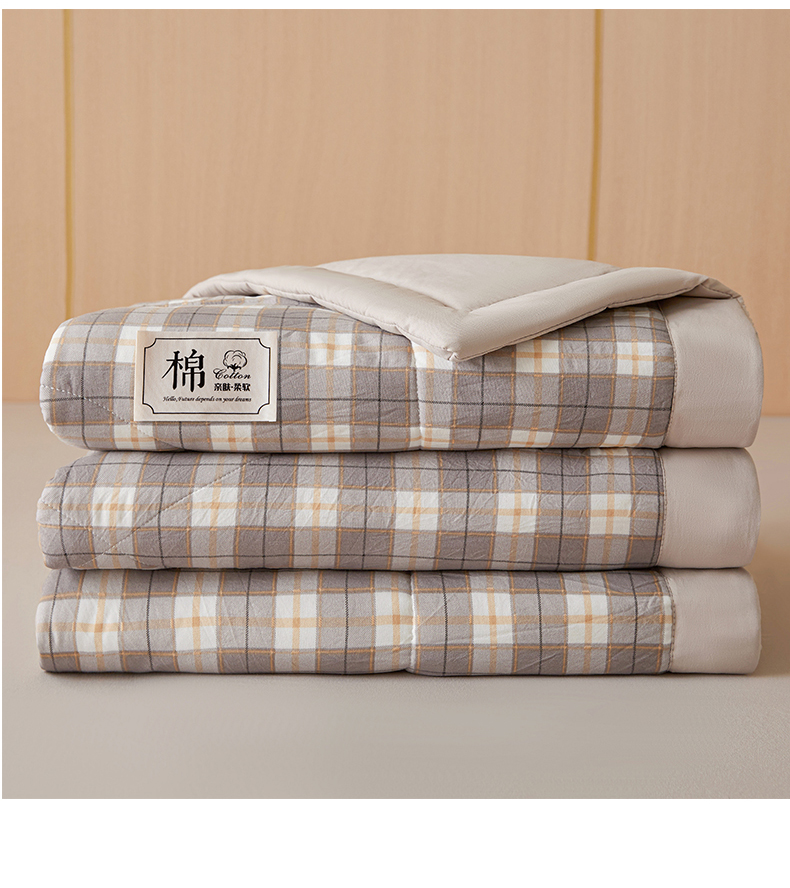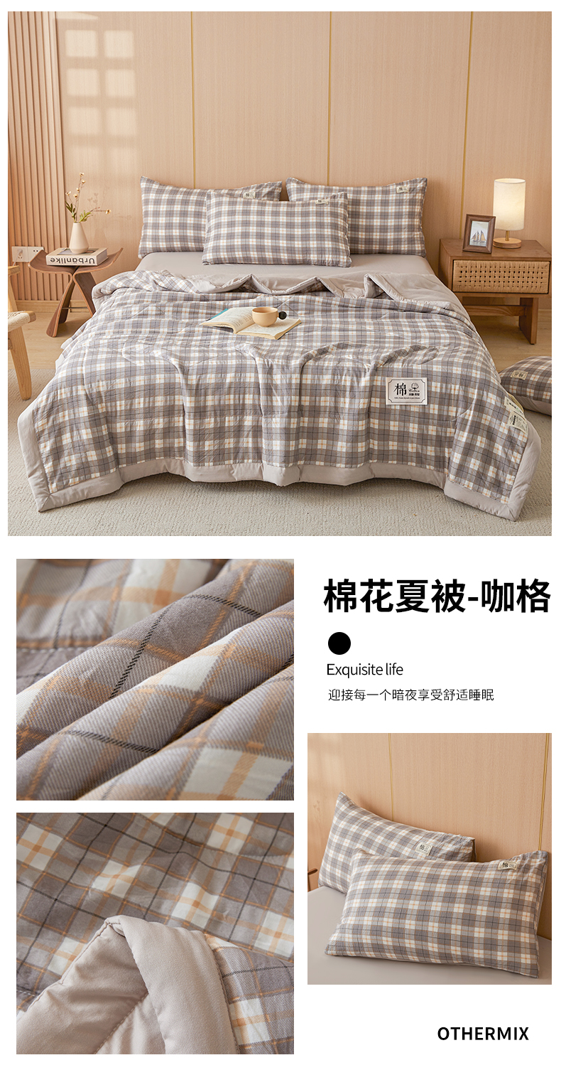 • 91家纺网 家纺一手货源 找家纺 悦织语 2025新款A类色织水洗棉夏被新疆棉花被空调被四件套 棉花夏被-咖格