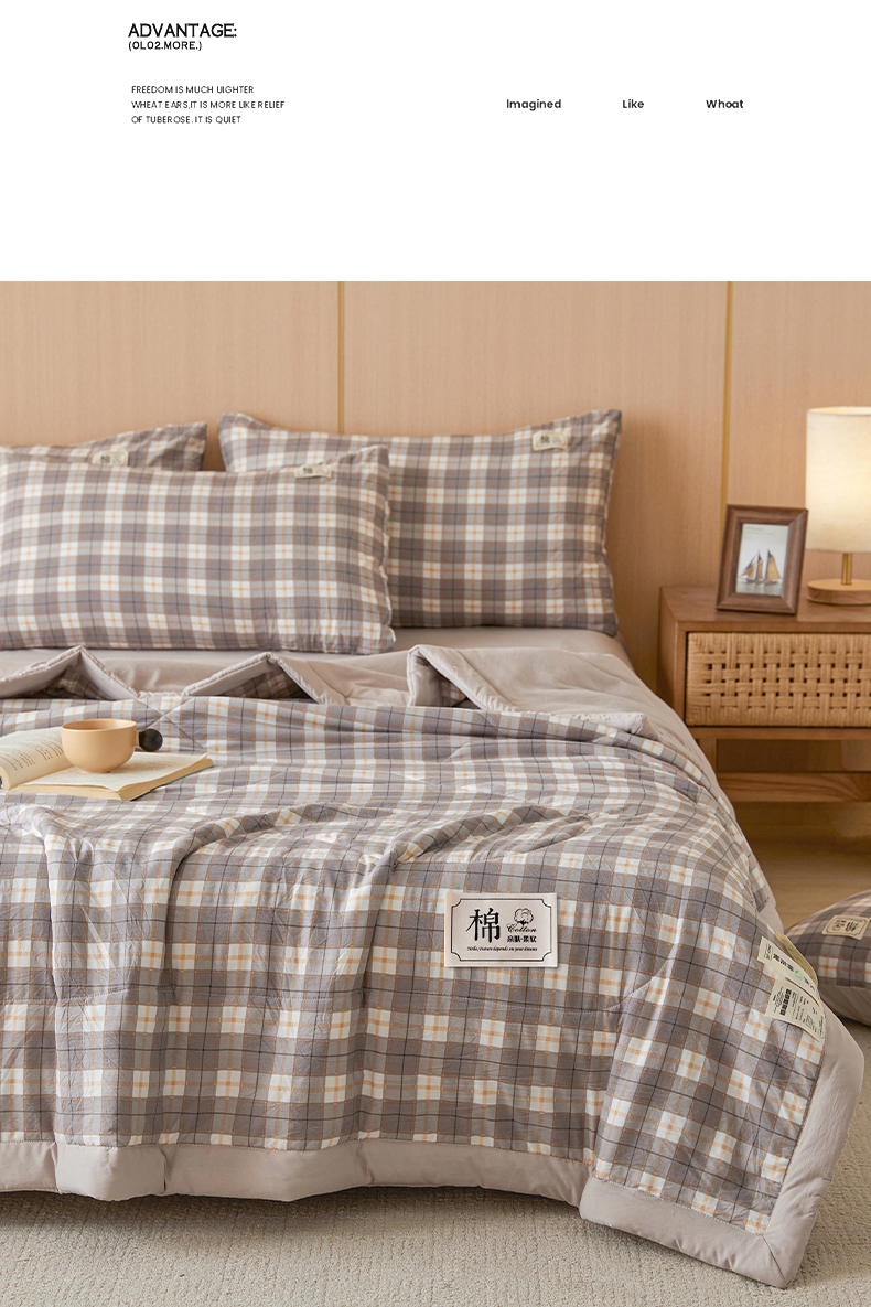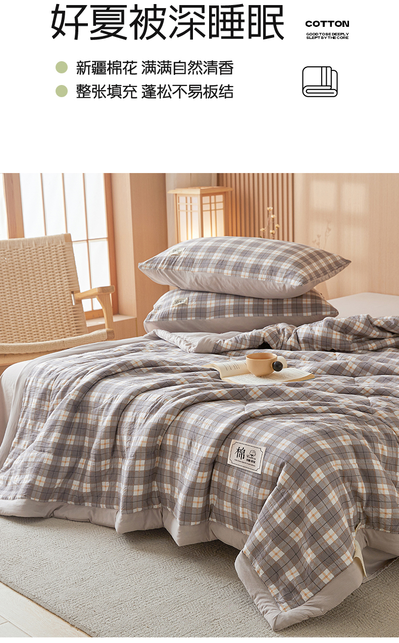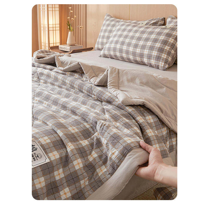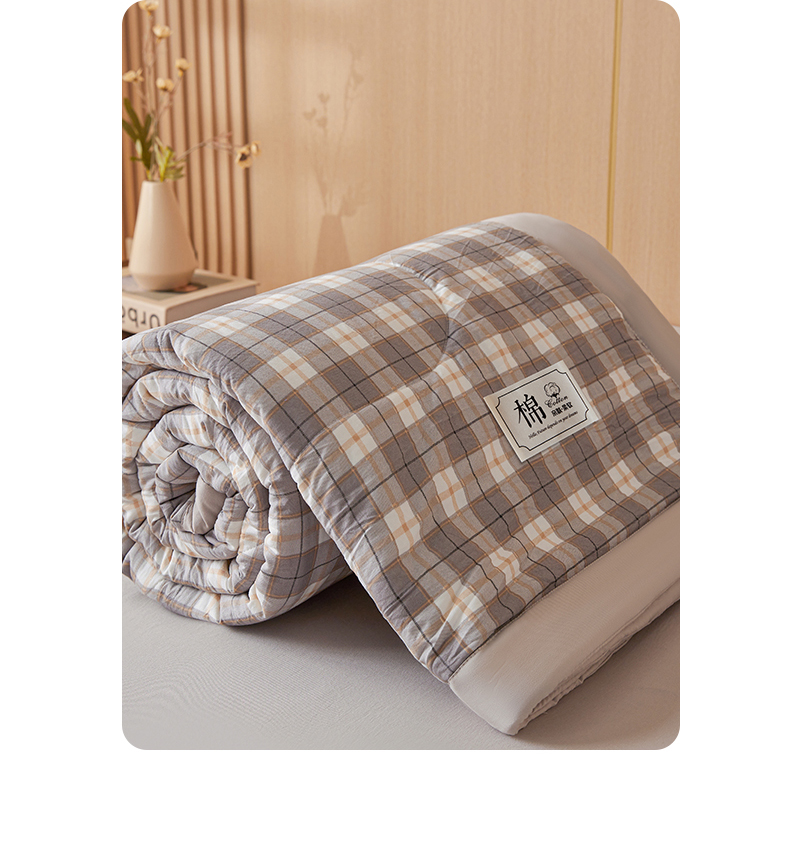 • 91家纺网 家纺一手货源 找家纺 悦织语 2025新款A类色织水洗棉夏被新疆棉花被空调被四件套 棉花夏被-咖格