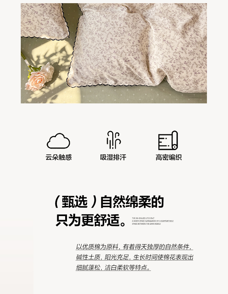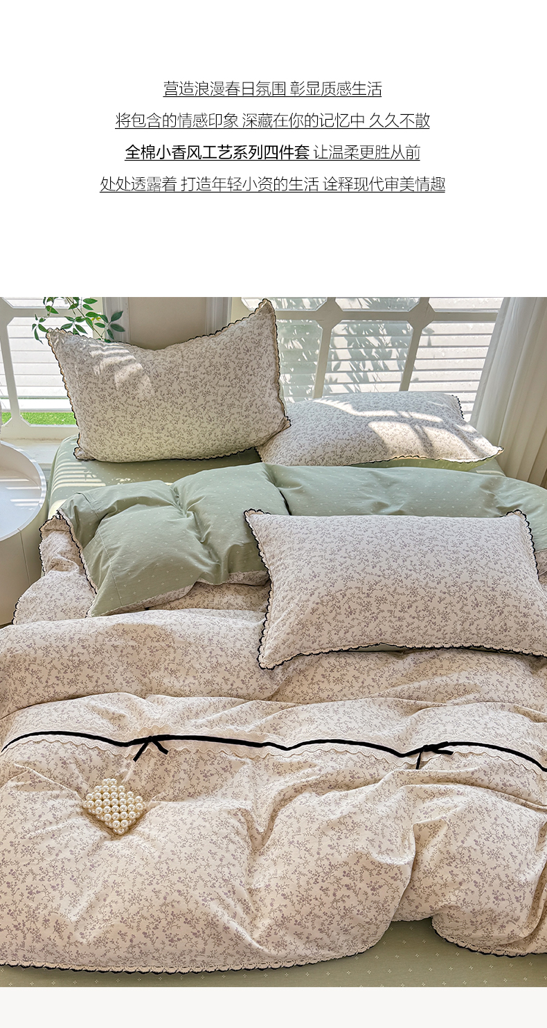 商品名称:艾唯希2025新款全棉小香风工艺四件套纯棉小花边碎花被套韩式公主风 初朵