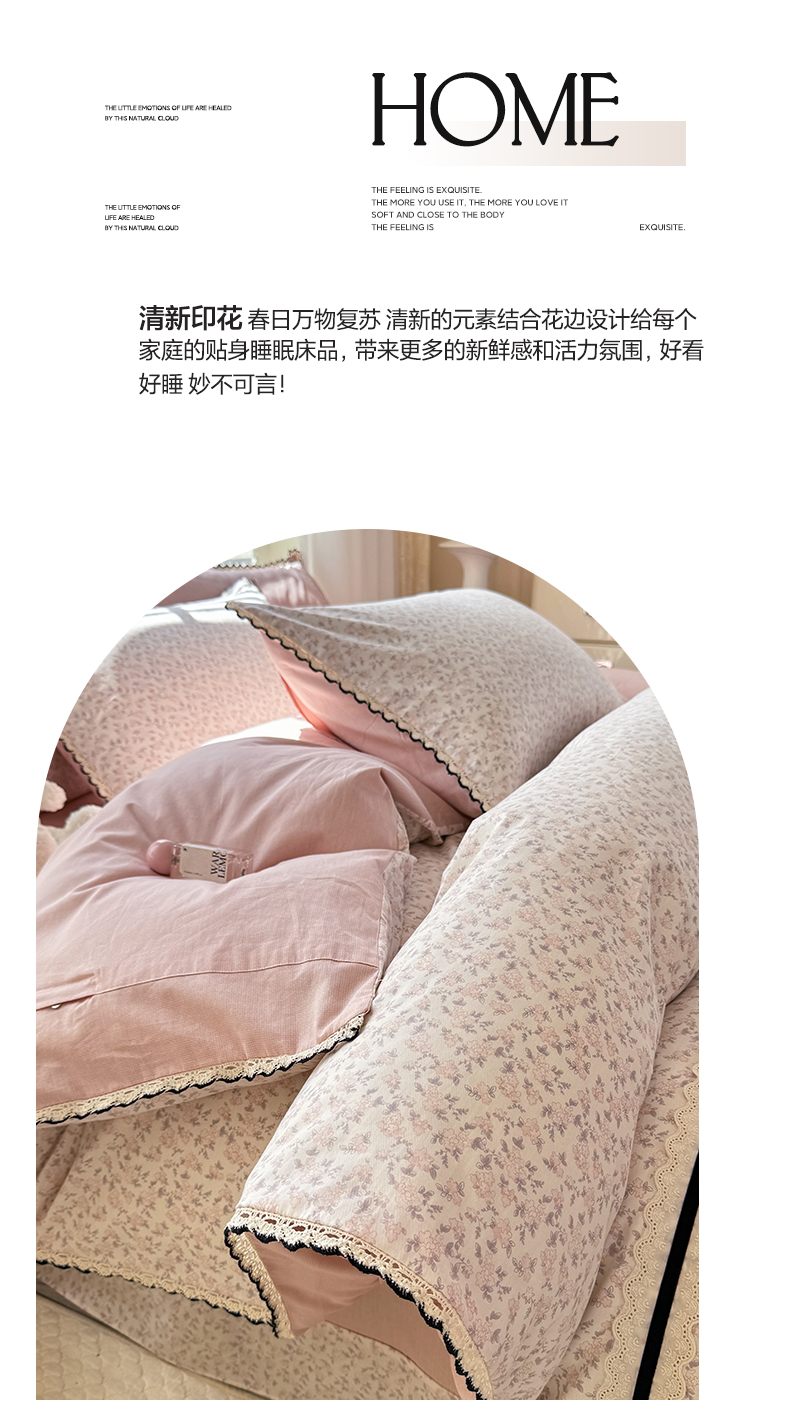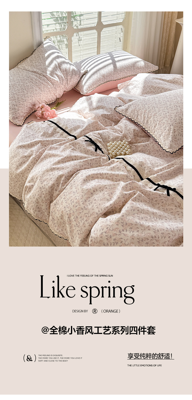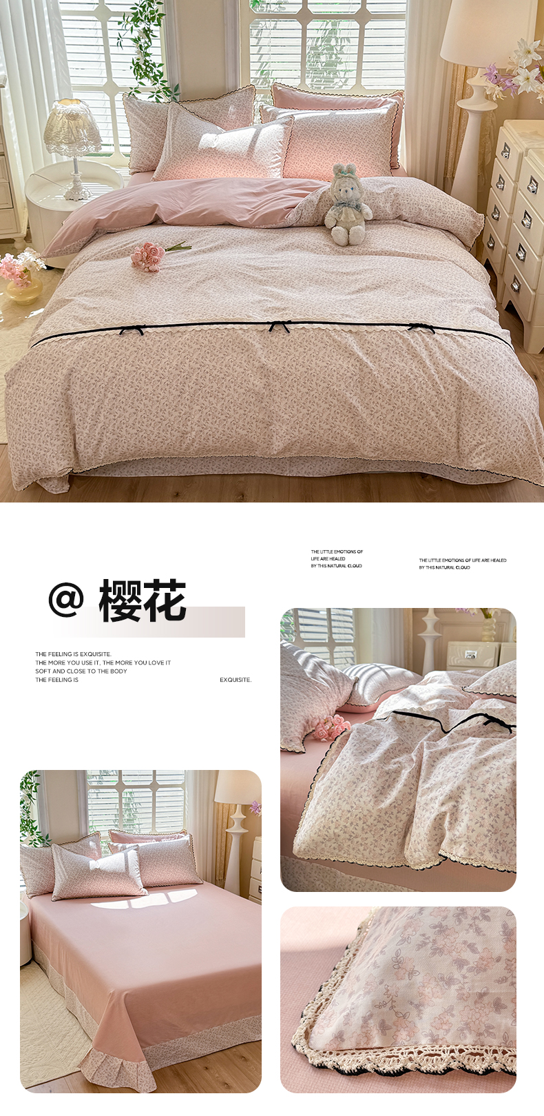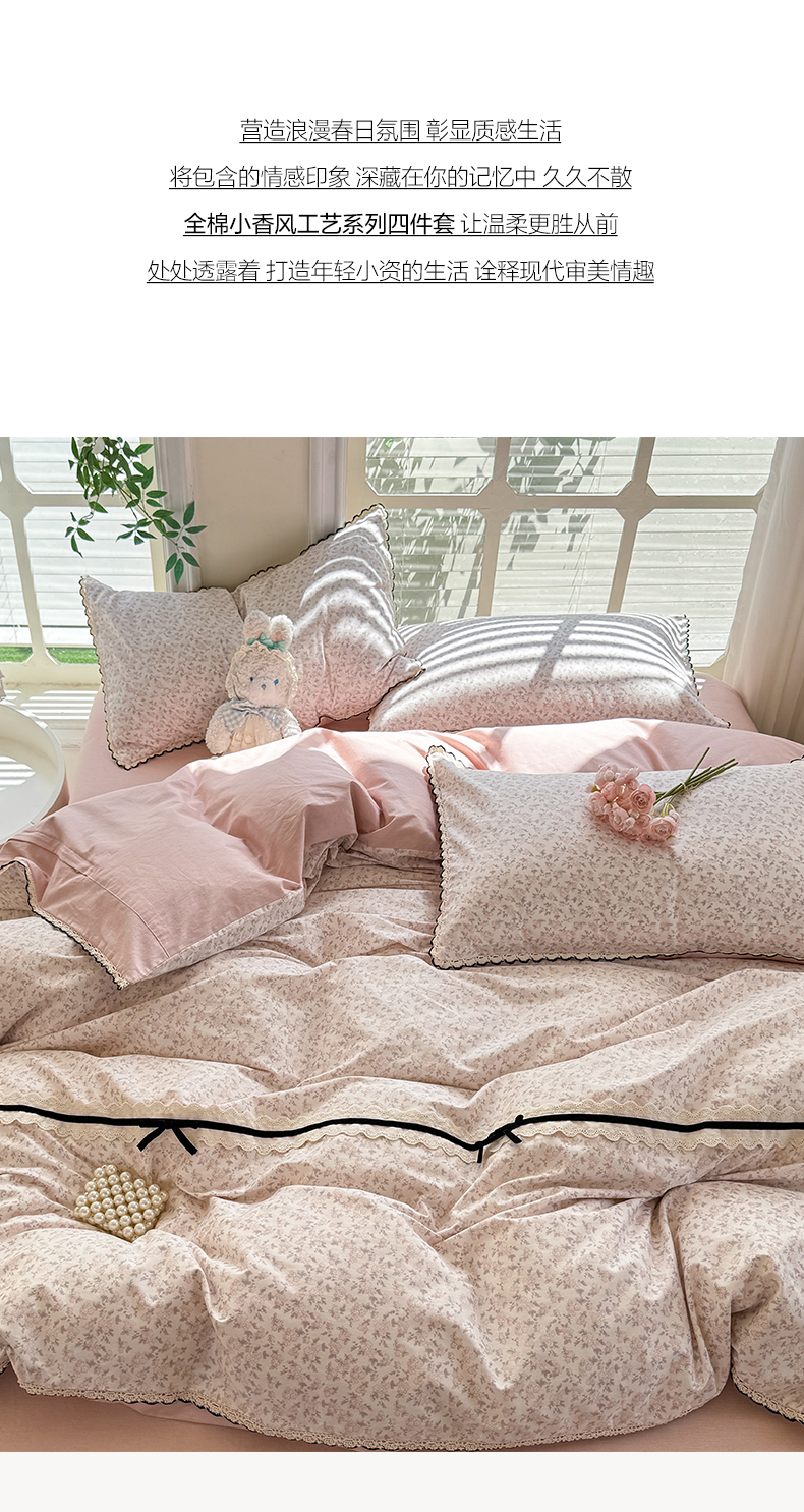 商品名称:艾唯希2025新款全棉小香风工艺四件套纯棉小花边碎花被套韩式公主风 樱花