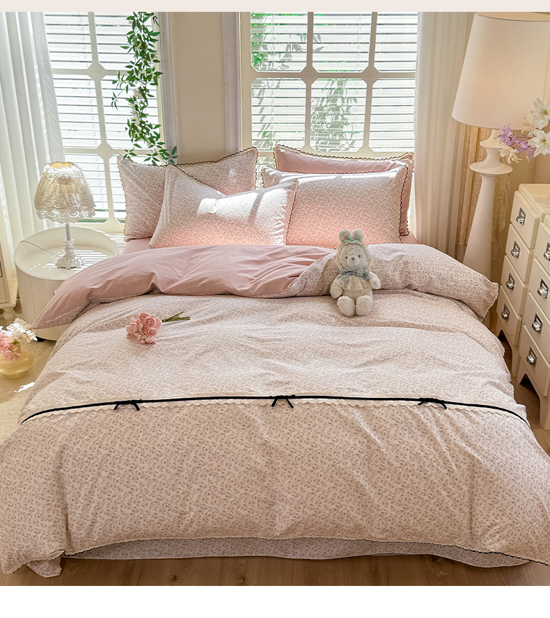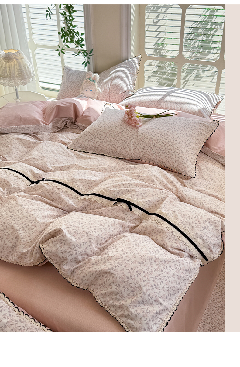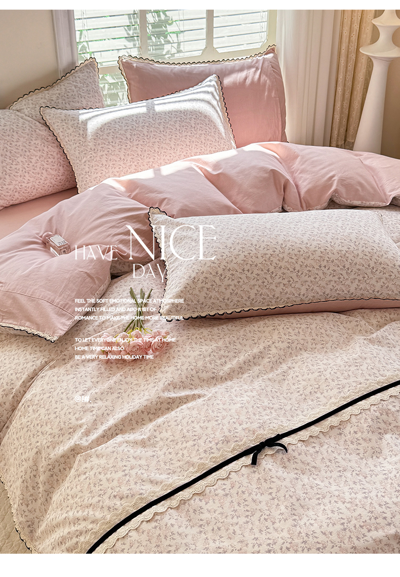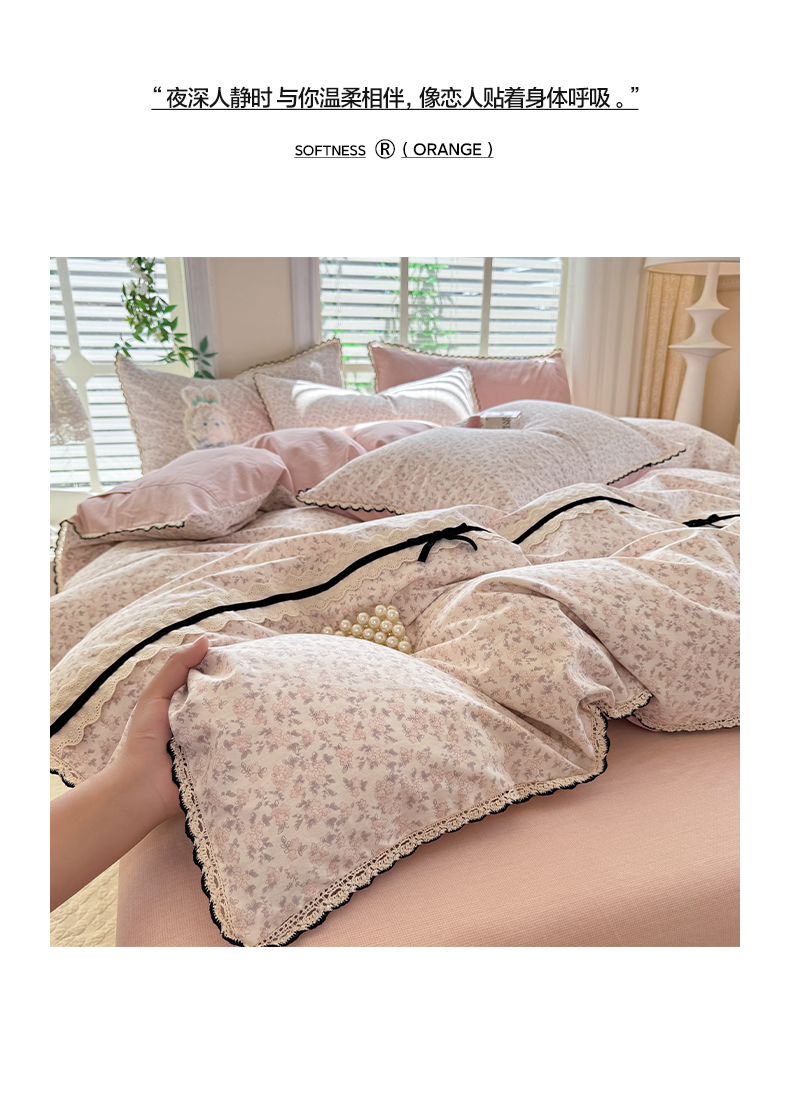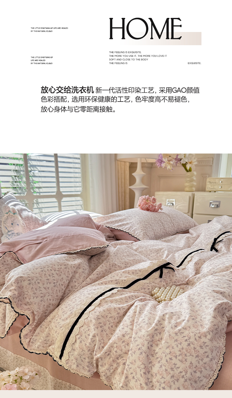 商品名称:艾唯希2025新款全棉小香风工艺四件套纯棉小花边碎花被套韩式公主风 樱花