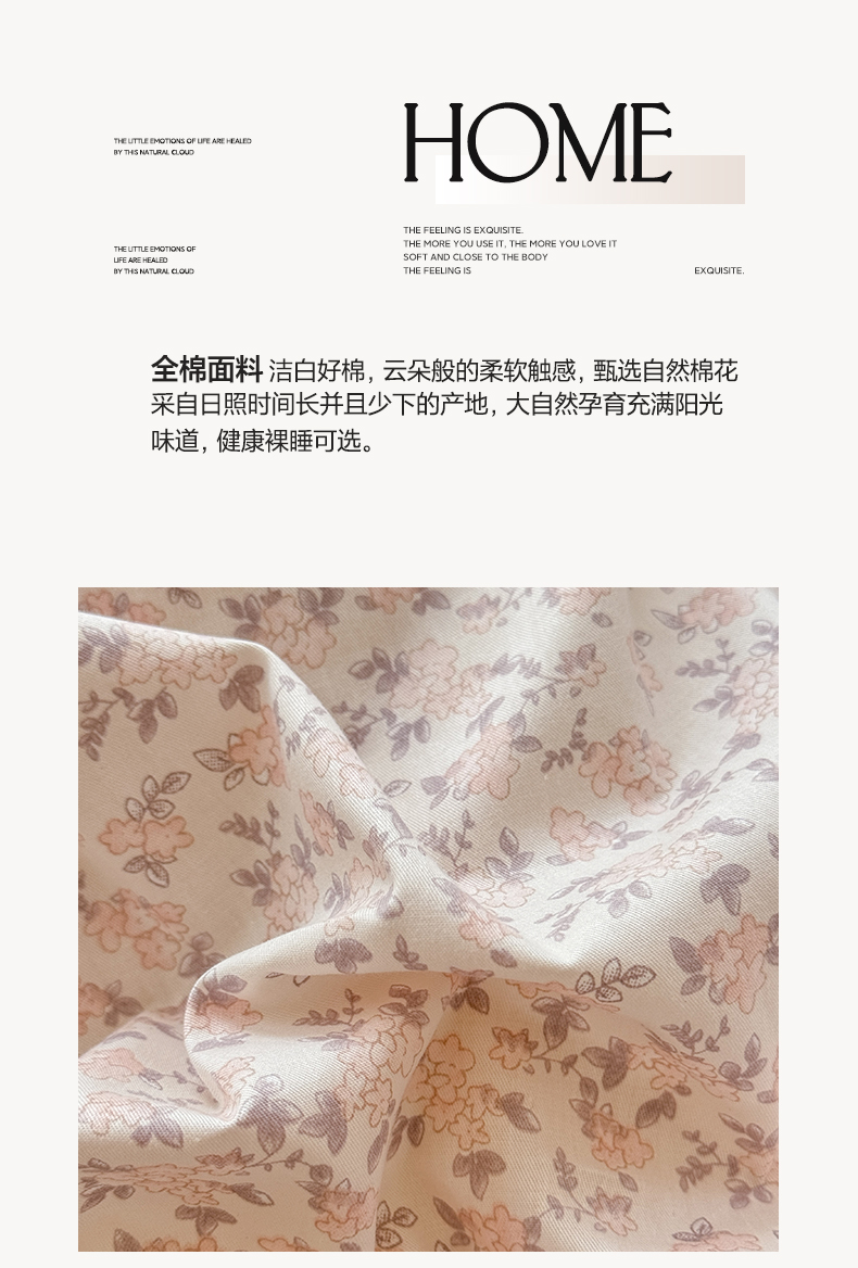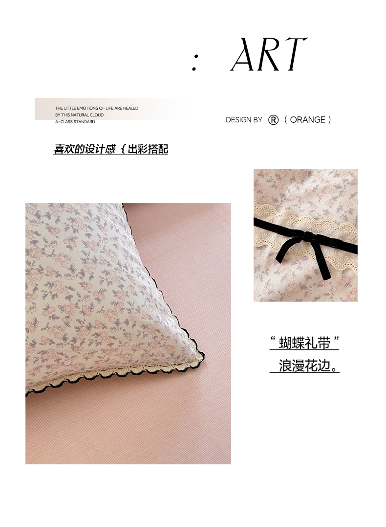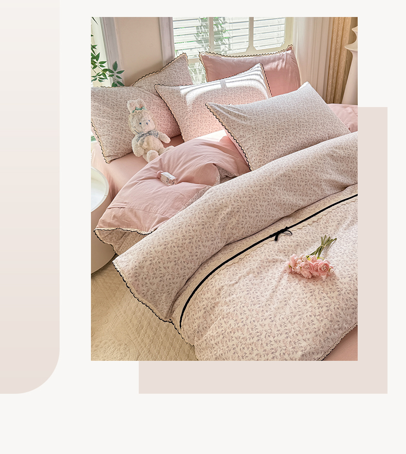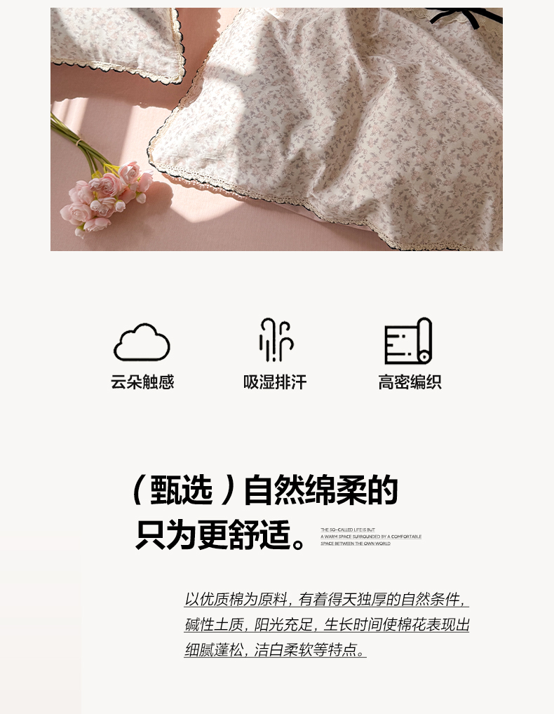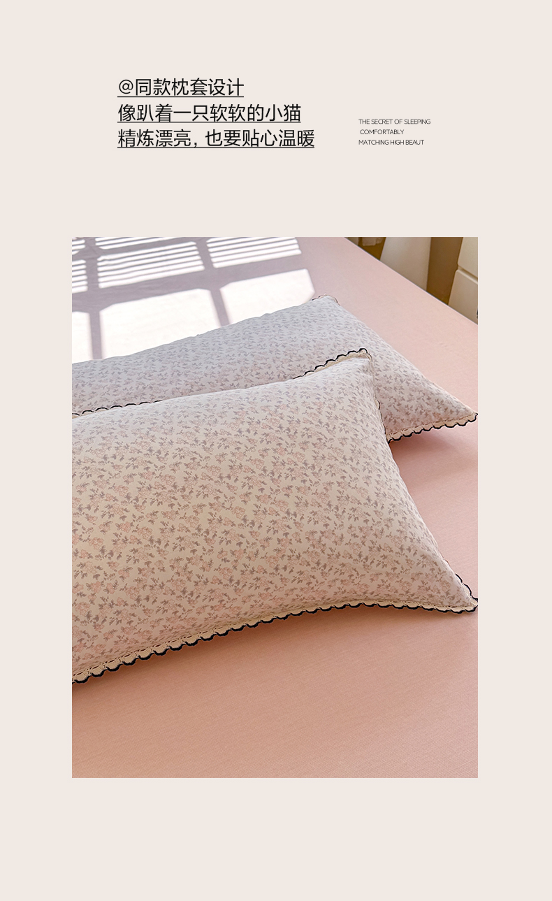 商品名称:艾唯希2025新款全棉小香风工艺四件套纯棉小花边碎花被套韩式公主风 樱花