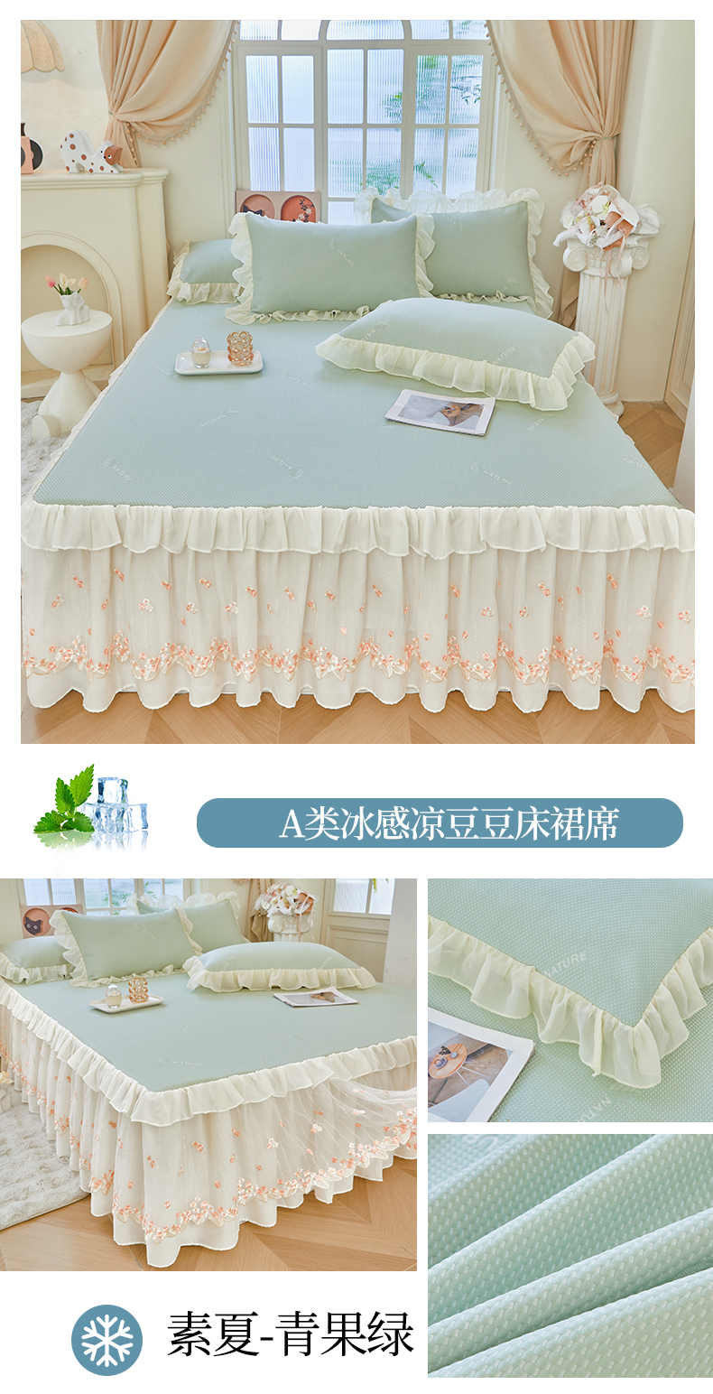 锦格2025年新款A类冰感凉豆豆床裙席 素夏-青果绿