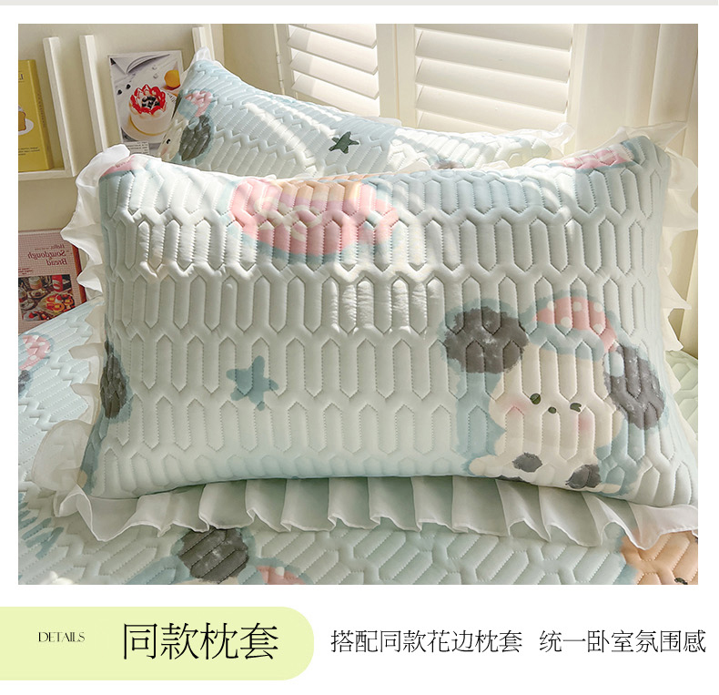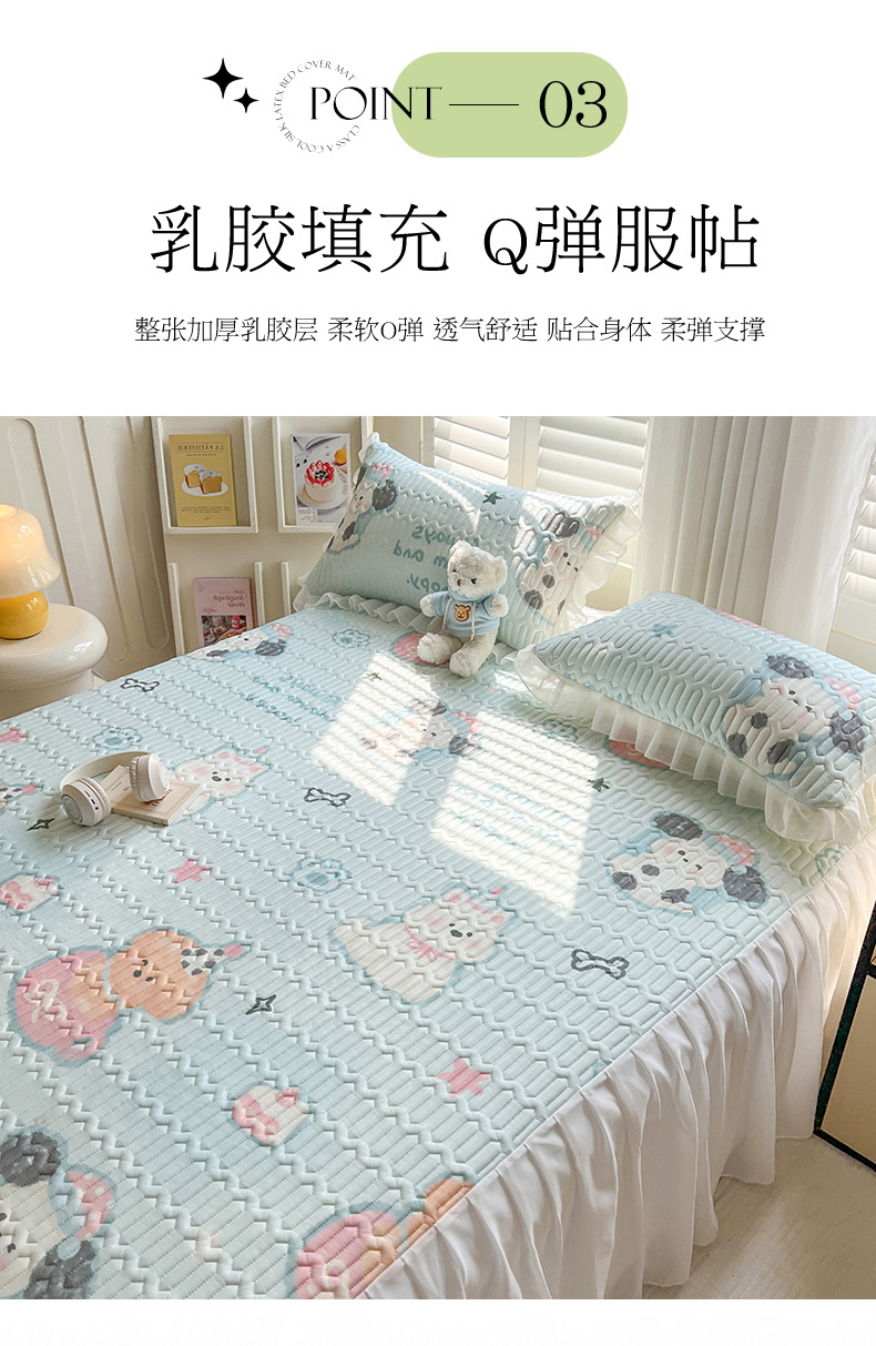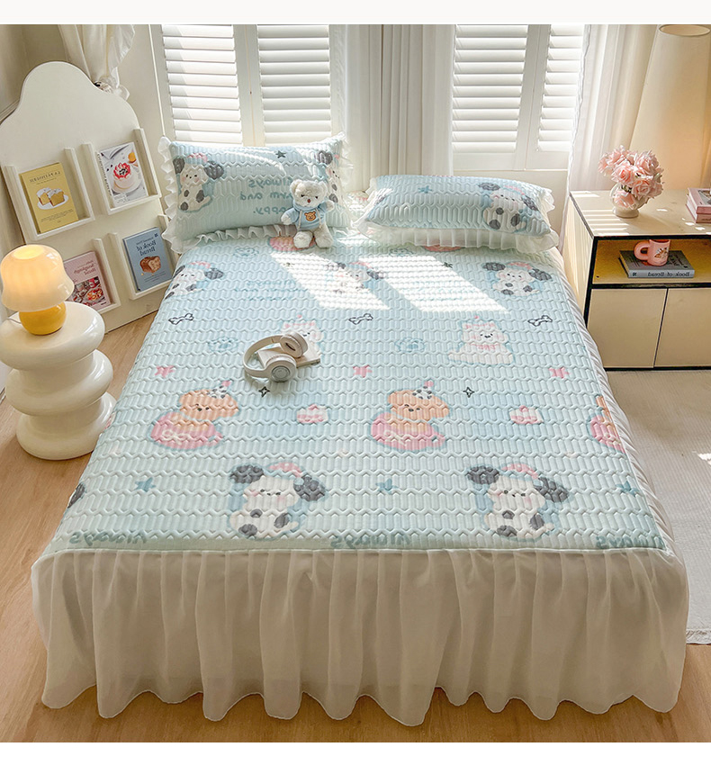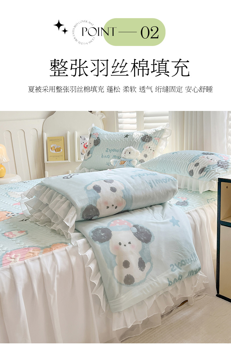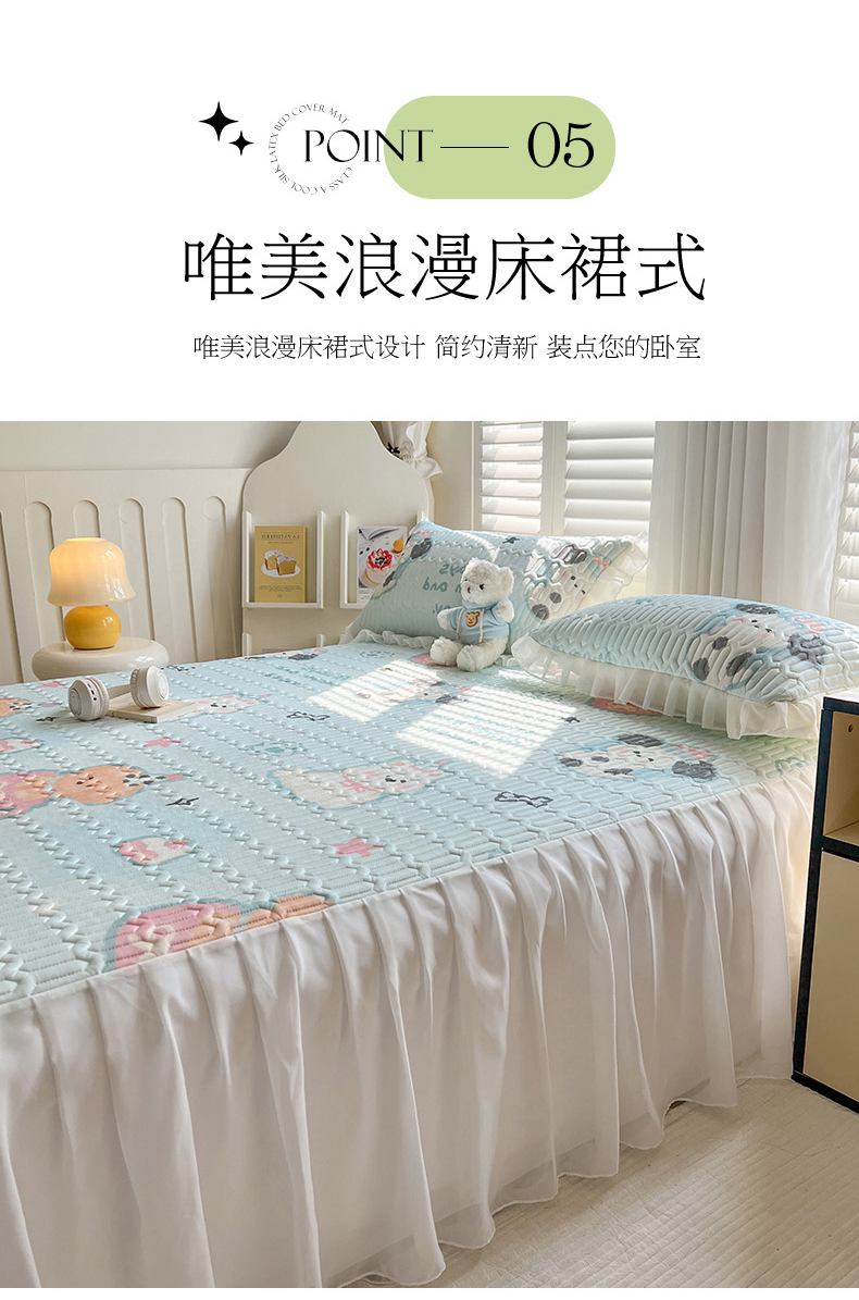 商品名称:慕澄2025新款小清新印花凉感丝花床裙款乳胶凉席 嘟嘟旺仔