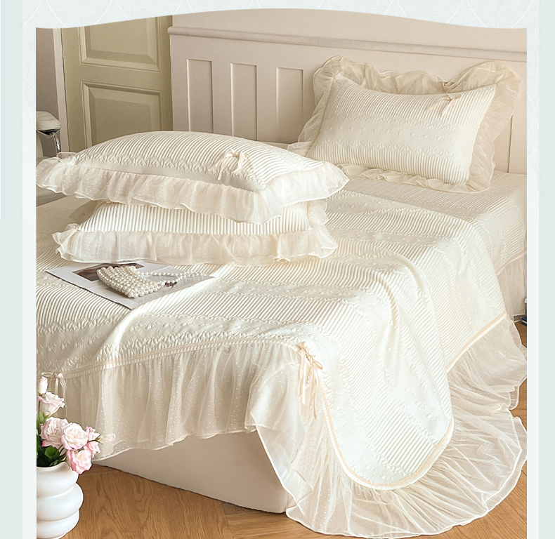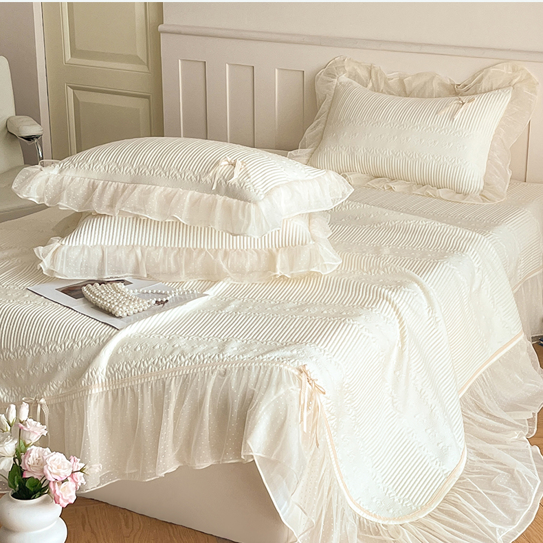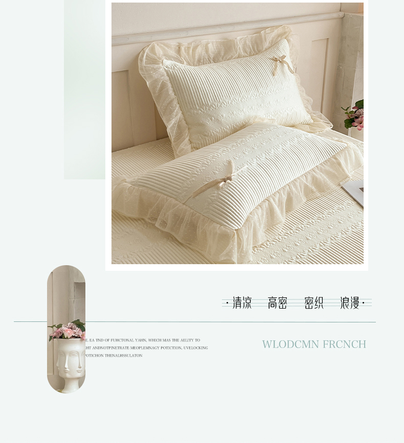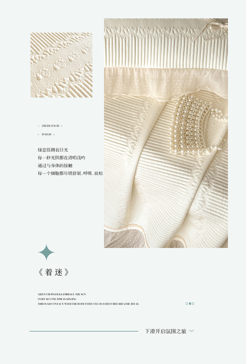 商品名称:(总)蓝邻家纺 2025年新款PE提花海岛皱花边织带款凉席系列