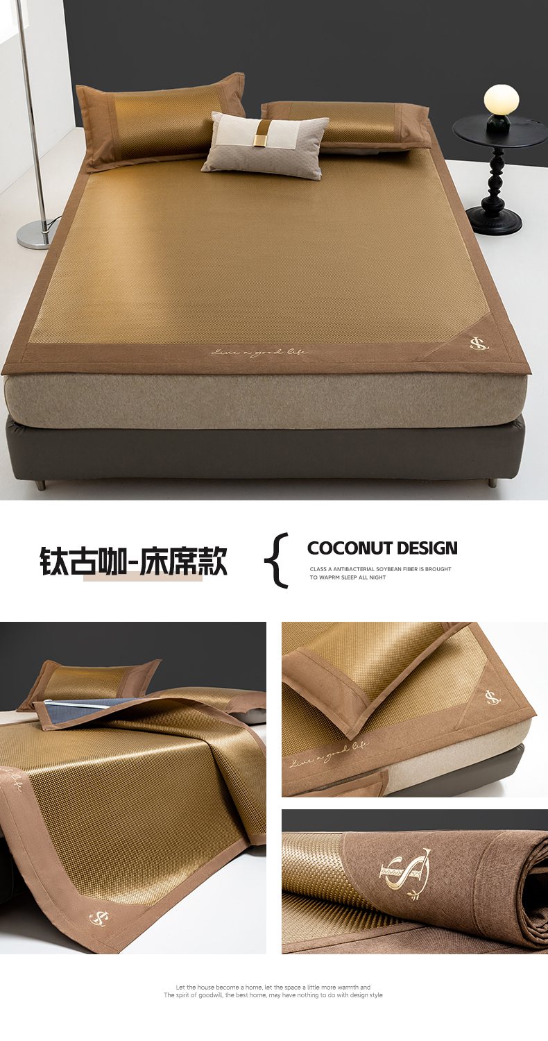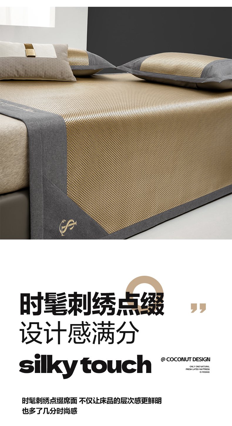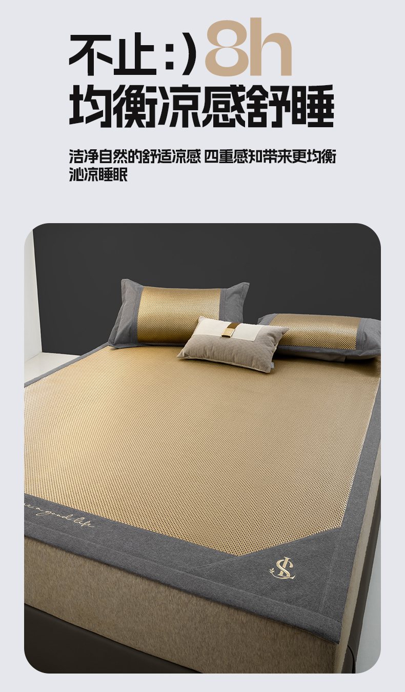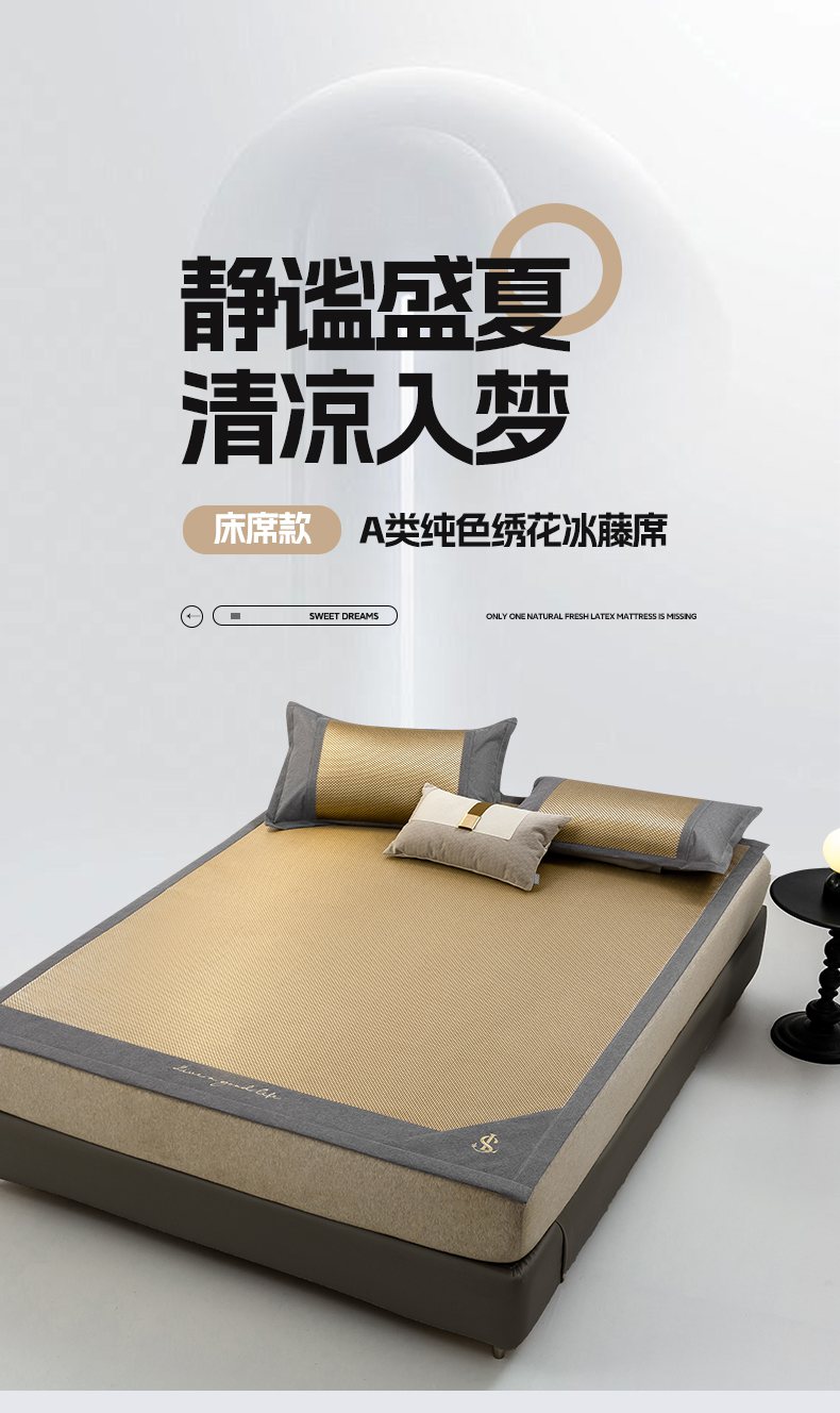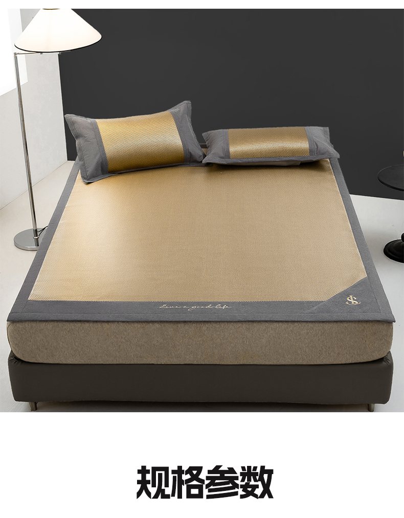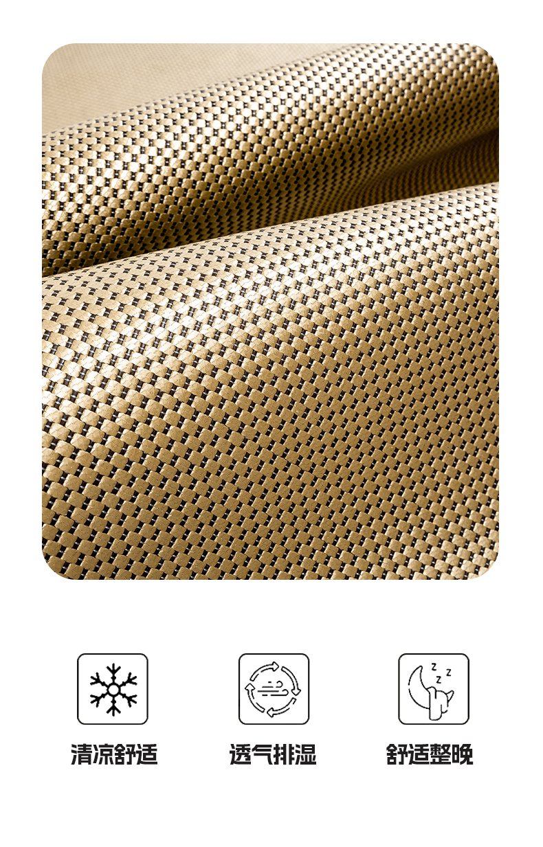 商品名称:宜家坊 2025新款A类纯色绣花冰藤席凉席三件套 曙光金-床席款