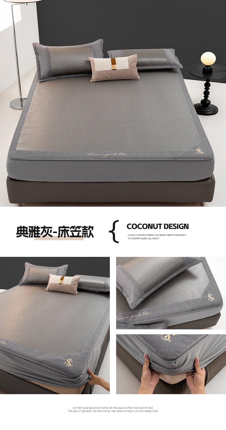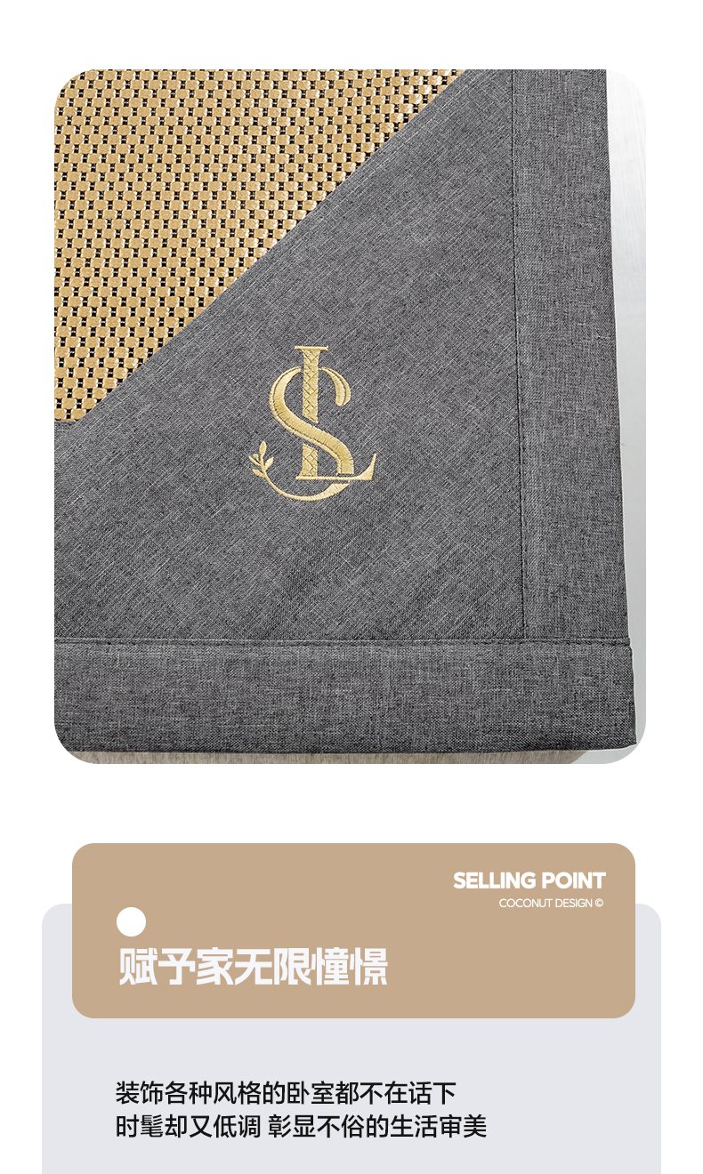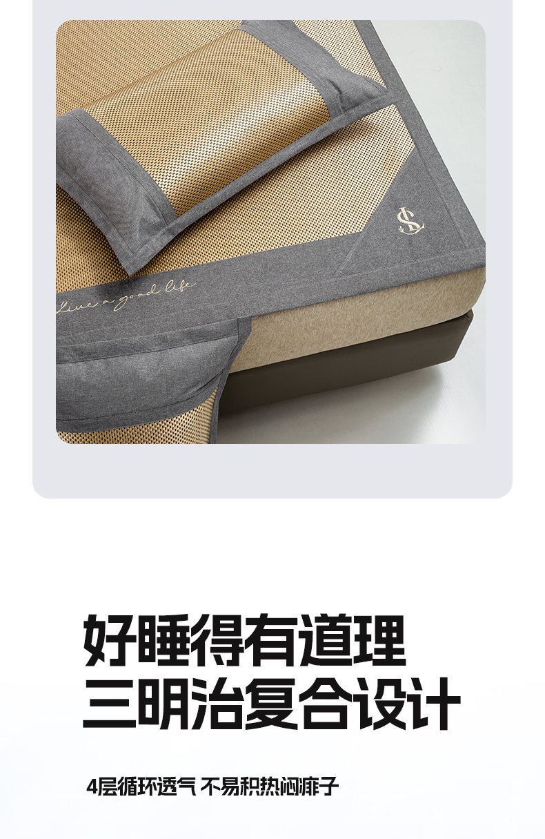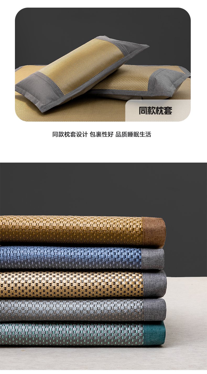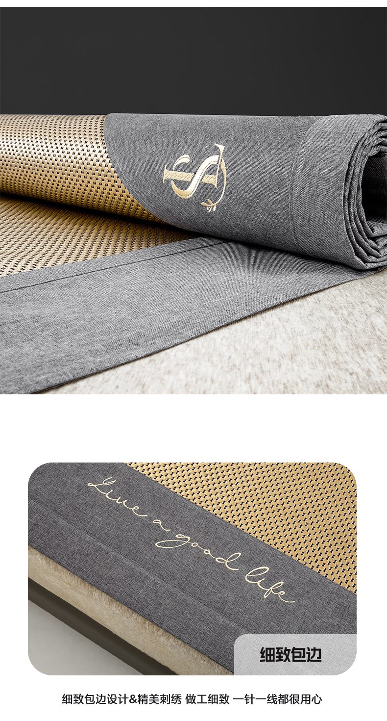 商品名称:宜家坊 2025新款A类纯色绣花冰藤席凉席三件套 曙光金-床席款