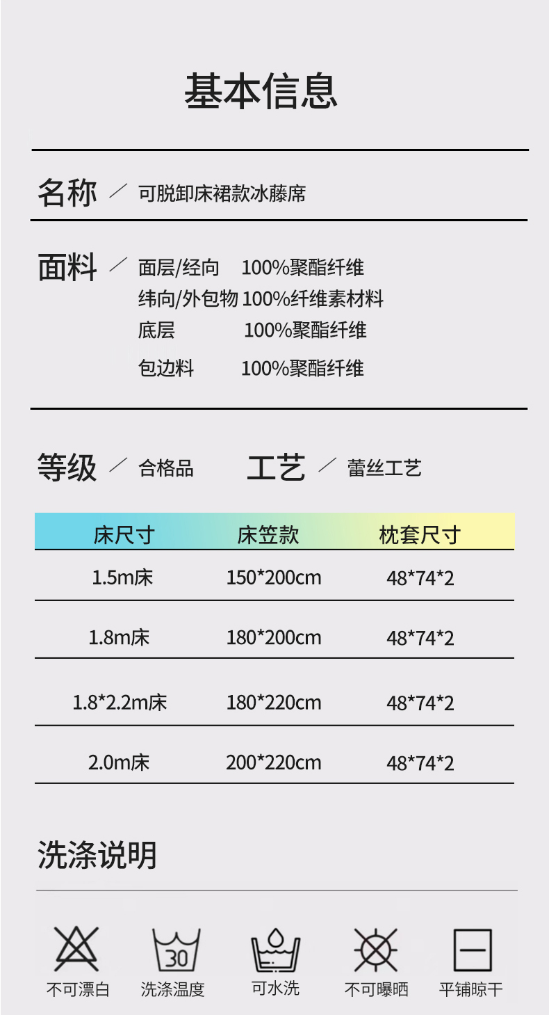 商品名称:(总)网红馆(ck家纺) 2025新款可脱卸床裙款冰藤席-盛夏繁星