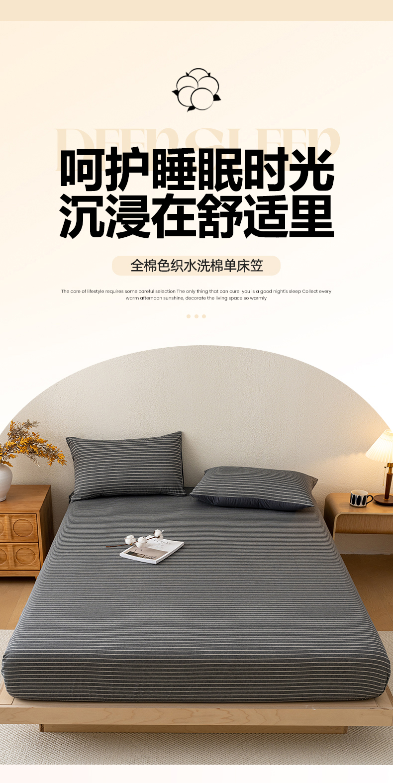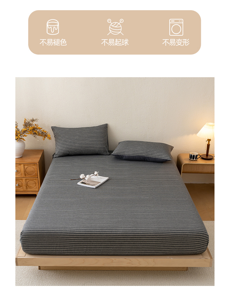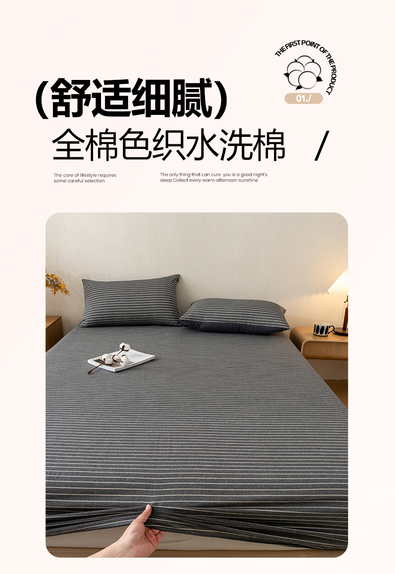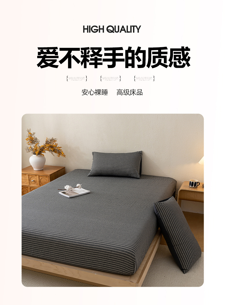 商品名称:吉象家纺 2025新款全棉色织水洗棉床笠三件套 拿铁
