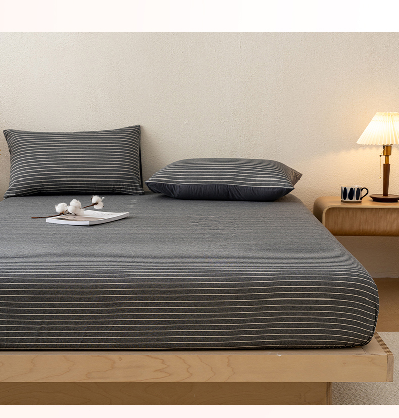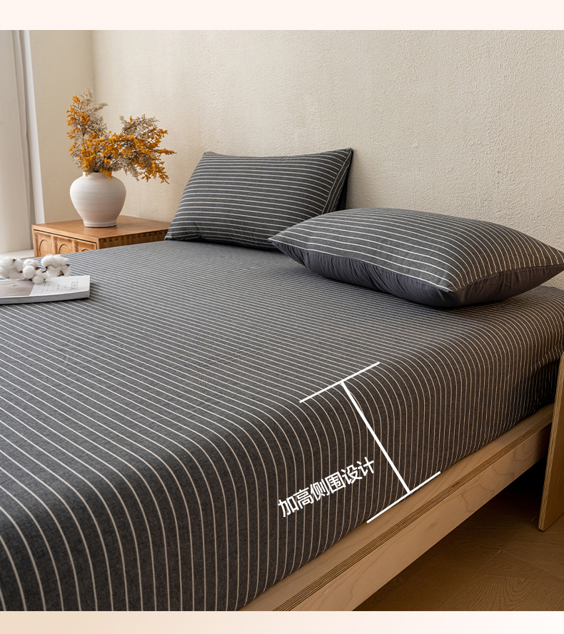 吉象家纺 2025新款全棉色织水洗棉床笠三件套 拿铁