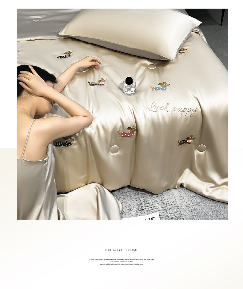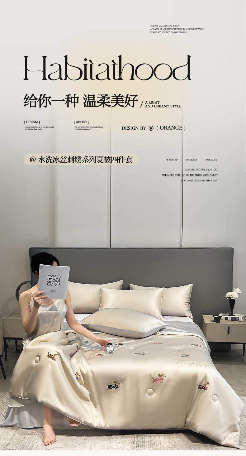 当前位置: 91家纺网 > 商品网购 > 床品套件 > 四件套 > 夏被四件套 > 如一 2025新款精绣系列水洗冰丝夏被四件套 卡皮巴拉-香槟灰