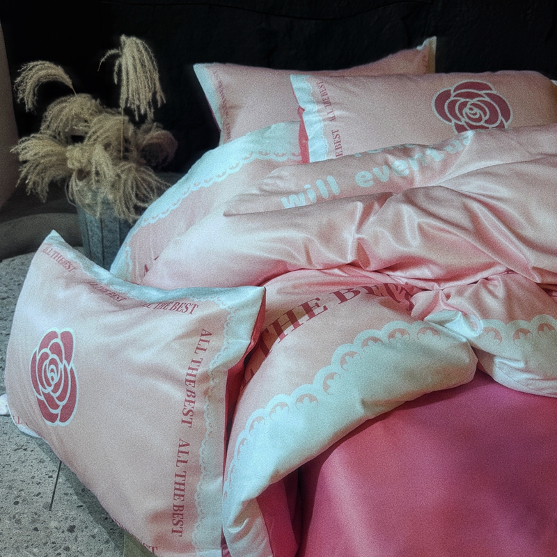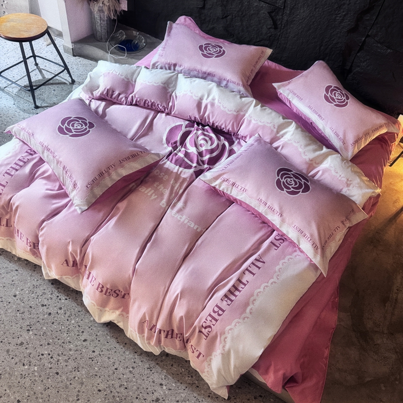商品名称:丽斐纺织 2025新款冰丝四件套 白蕾粉茶
