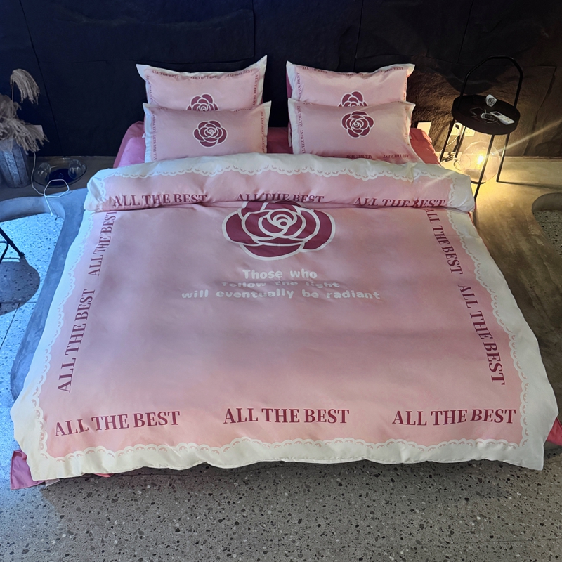 丽斐纺织 2025新款冰丝四件套 白蕾粉茶
