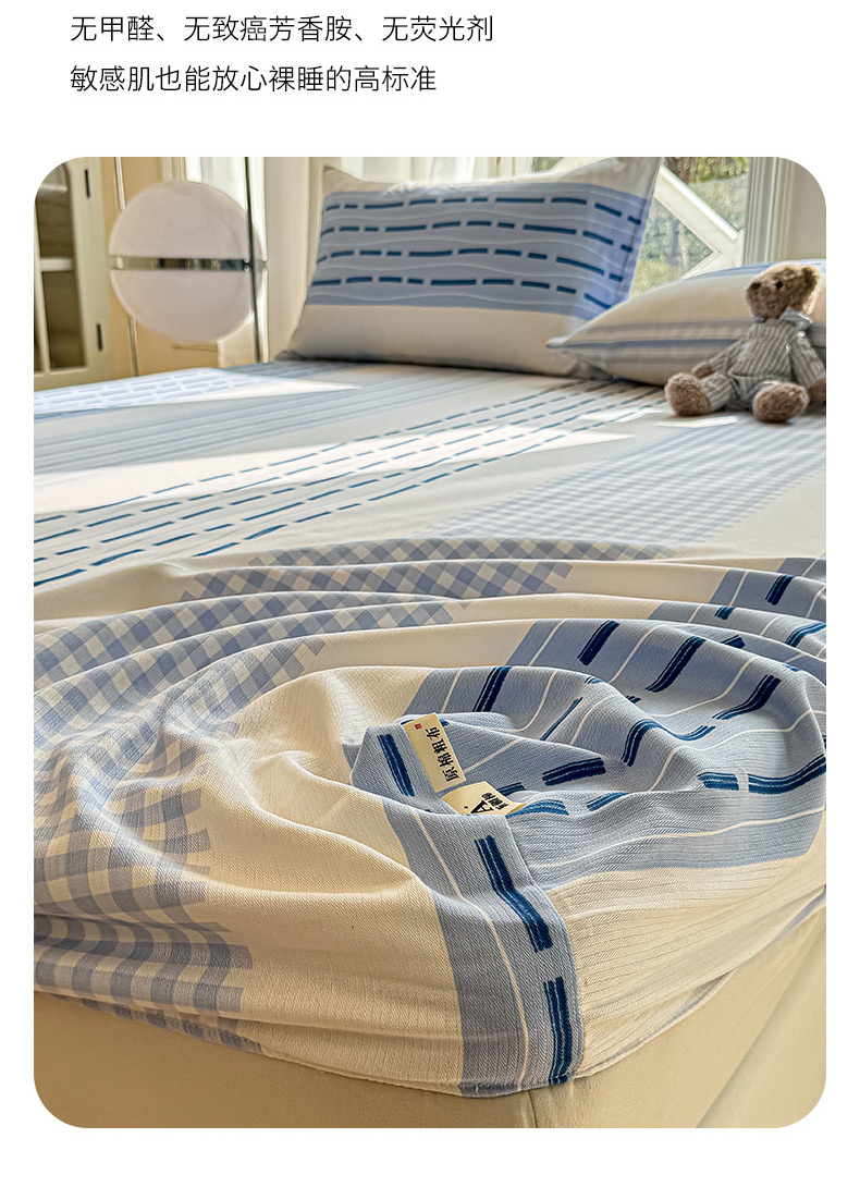 (总)居眠 2025新款单层色织水洗格子全棉纯棉单床笠床笠单件单品床笠,简兮兰,马丁灰,绿小格,蓝细条,印月粉,水兰小格,瑞土兰,米细条,印月灰,印月兰
