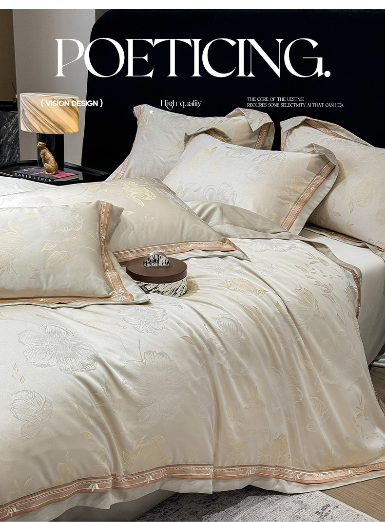商品名称: 2025新款轻奢A类天丝棉提花四件套真丝贡缎全工艺丝滑裸睡夏季爆款床上用品-茉影 茉影-疏影金