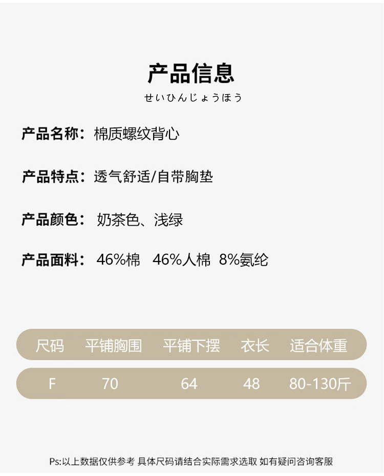 商品名称:良品汇馆 2025新款日式无印棉质螺纹背心良品吊带胸垫女内搭外穿打底美背固定杯文胸 奶茶色