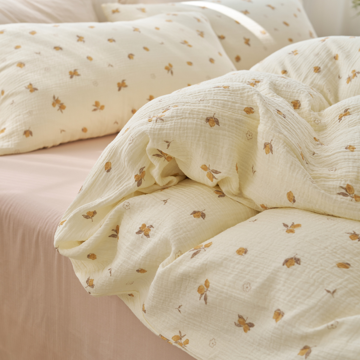 洋铭区(原狠狠爱) 2025新款全棉纯棉皱皱纱四件套 梦幻草莓