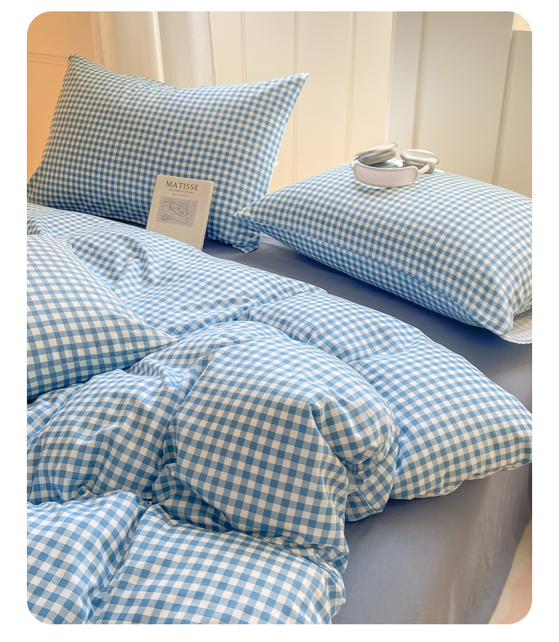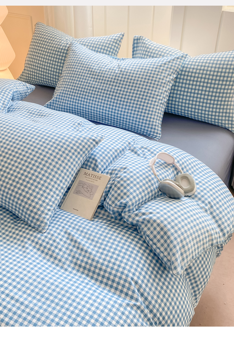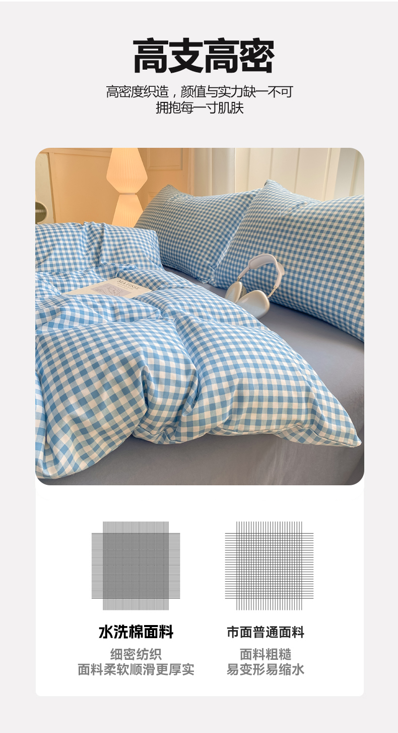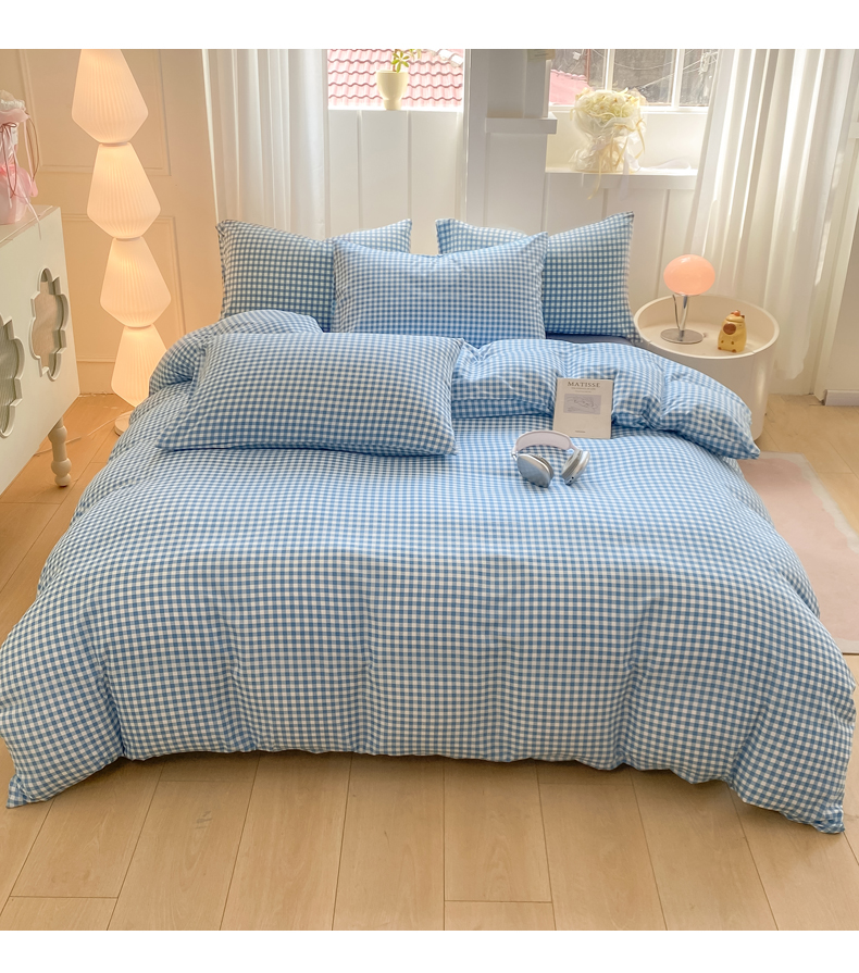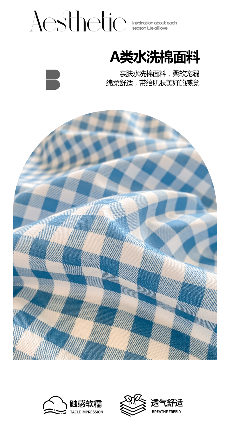 当前位置: 91家纺网 > 商品网购 > 床品套件 > 四件套 > 水洗棉四件套 > 慕木家纺 2025新品A类条纹简约无印风水洗棉床单款四件套条纹格系列(抽空压缩可跨境提供买家秀) 简蓝小格+海青