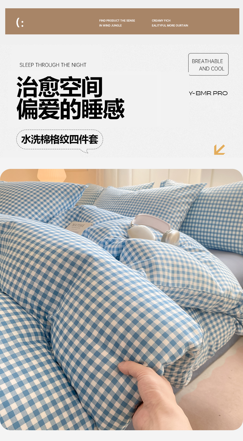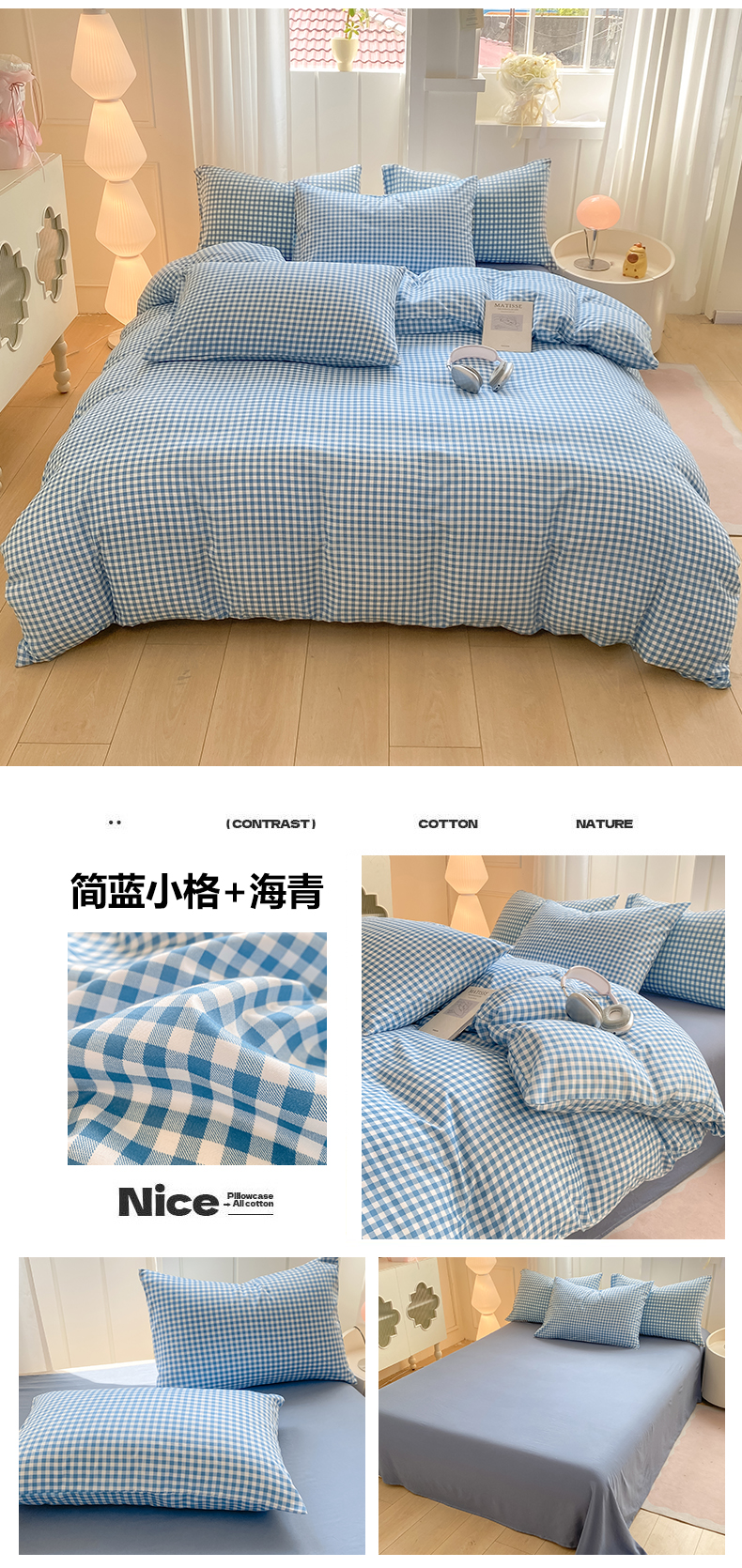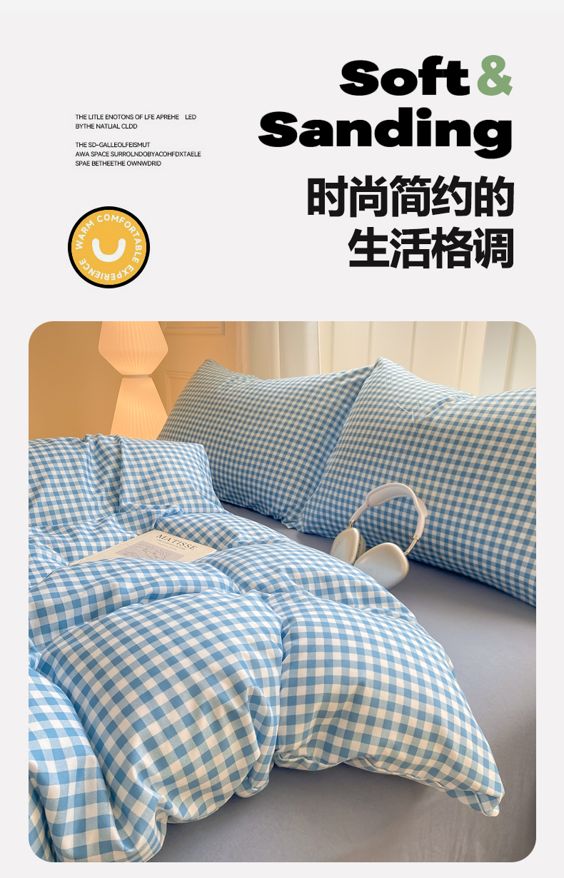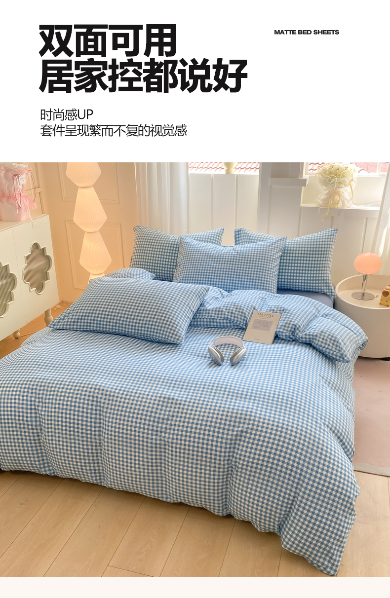 当前位置: 91家纺网 > 商品网购 > 床品套件 > 四件套 > 水洗棉四件套 > 慕木家纺 2025新品A类条纹简约无印风水洗棉床单款四件套条纹格系列(抽空压缩可跨境提供买家秀) 简蓝小格+海青