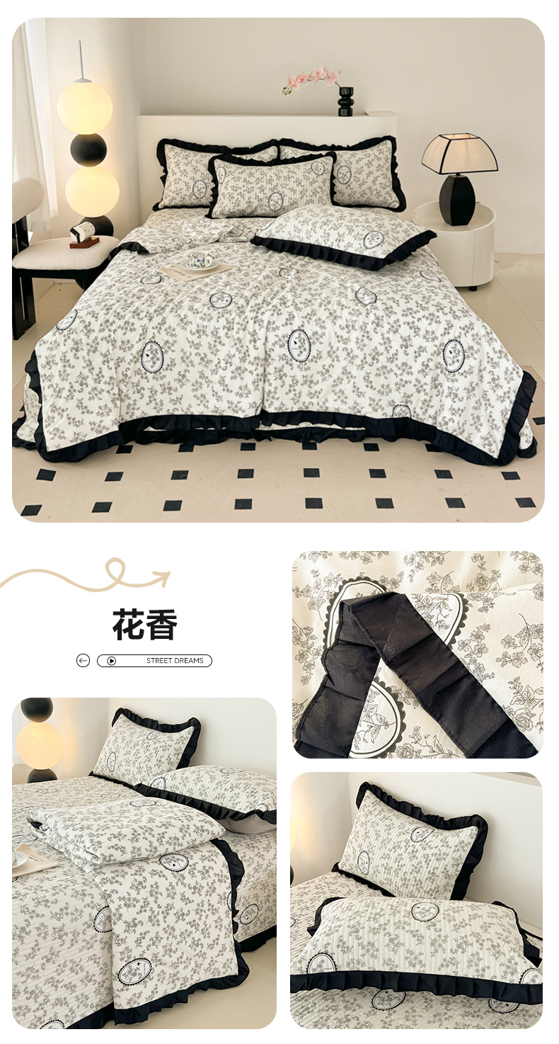 (总)同田家纺 2024新款泡泡棉印花蕾丝工艺四件套,萱花,樱桃,郁金香,竹子熊猫,朵朵花开,黑樱桃,花花小兔,花园,可爱猫,浪漫花季,绿林,莫奈花园,硕果累累,苏菲庄园