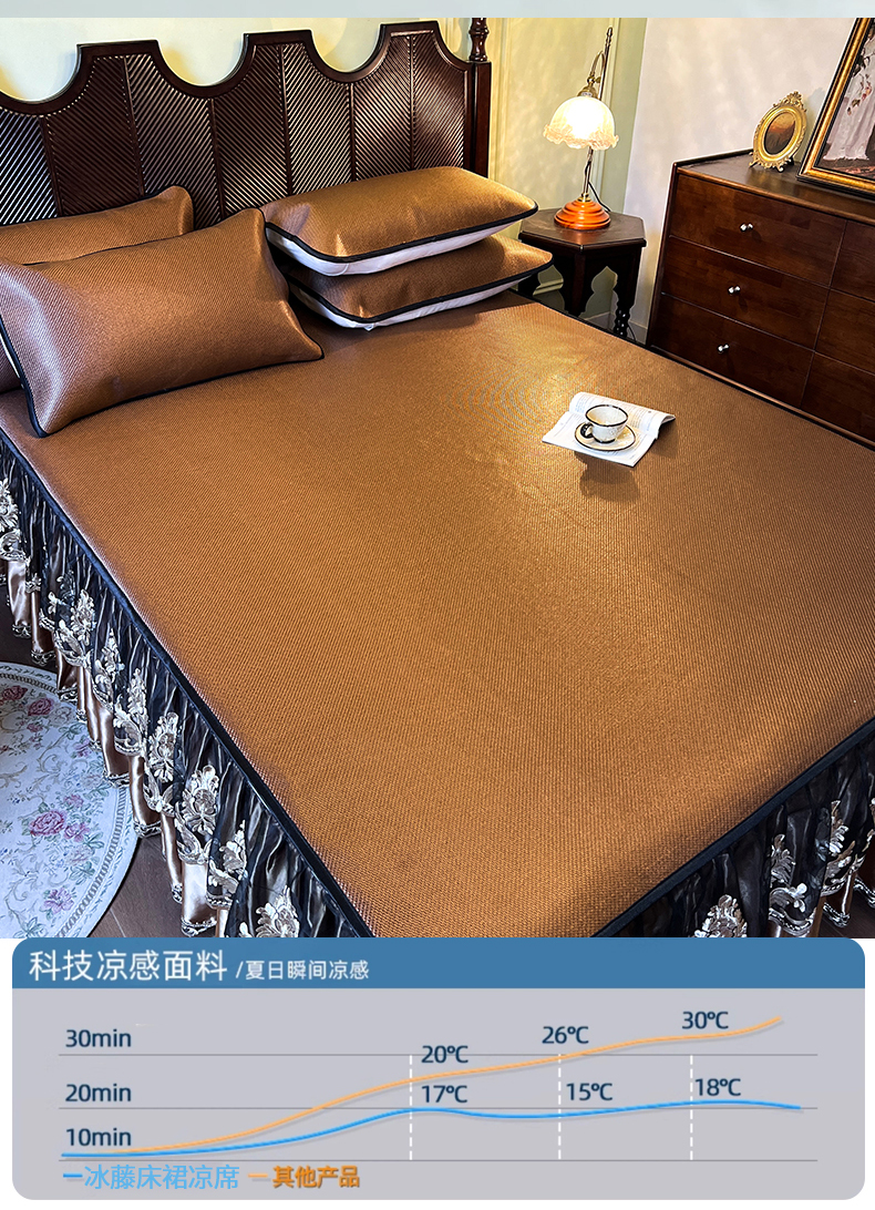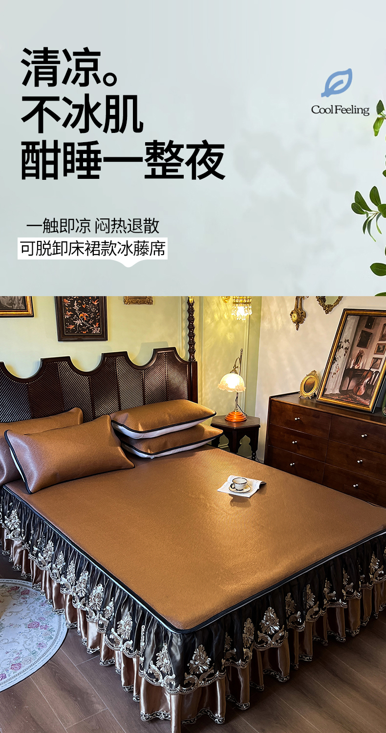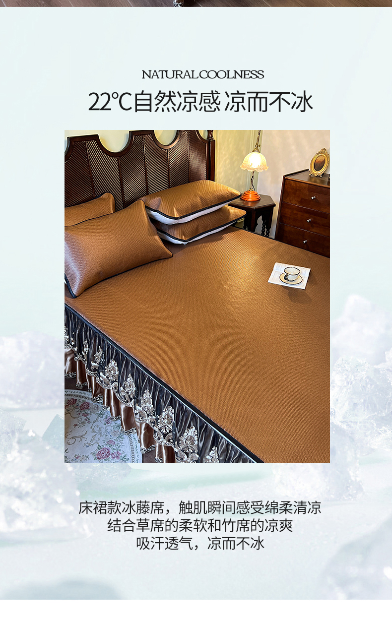 2.0*2.2床凉席三件套床裙200*220 枕套一对