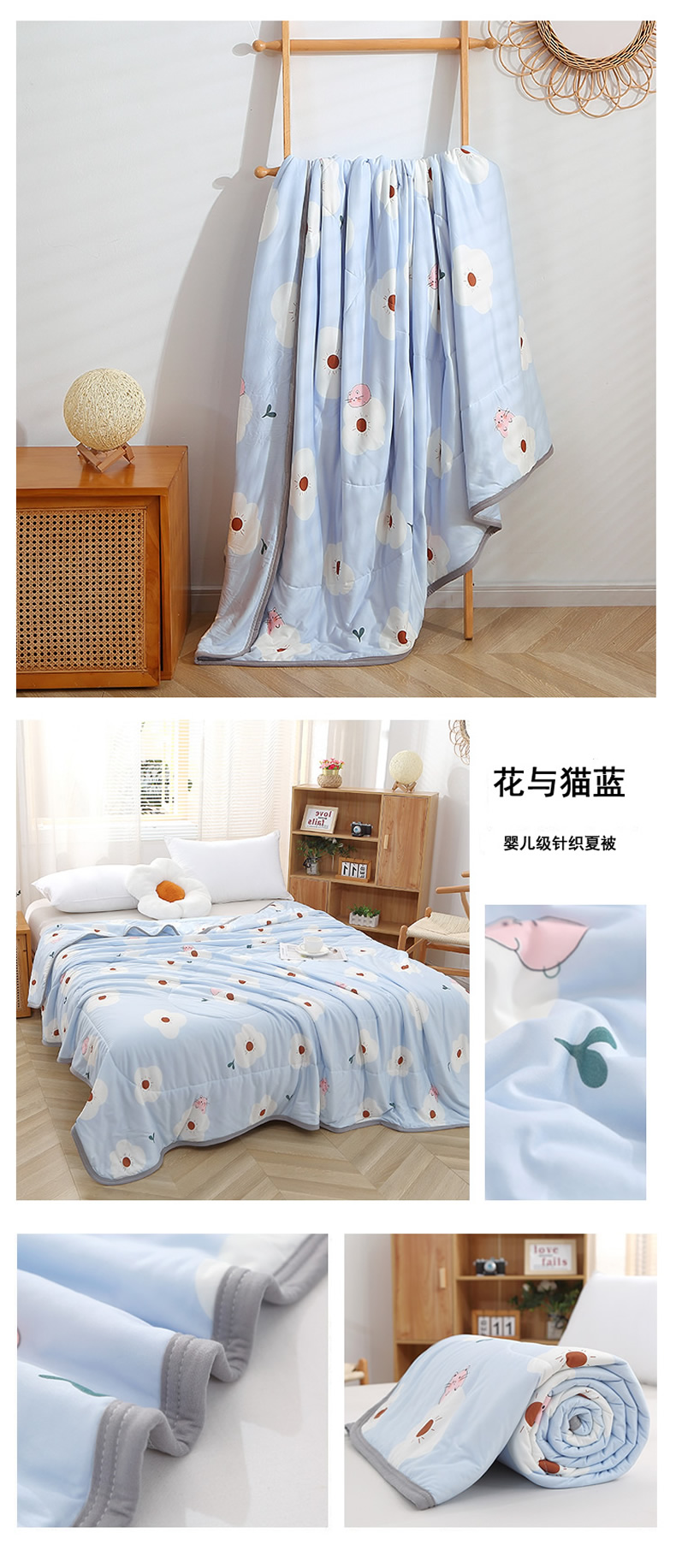商品名称:贝兰仙奴 2025新款针织棉夏被 花与猫蓝