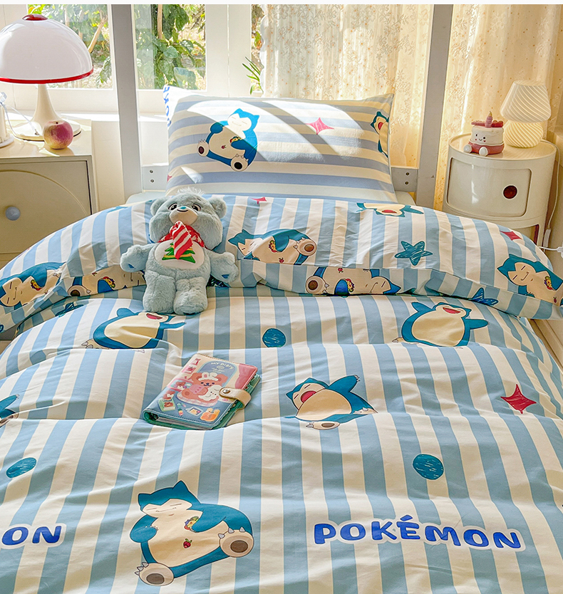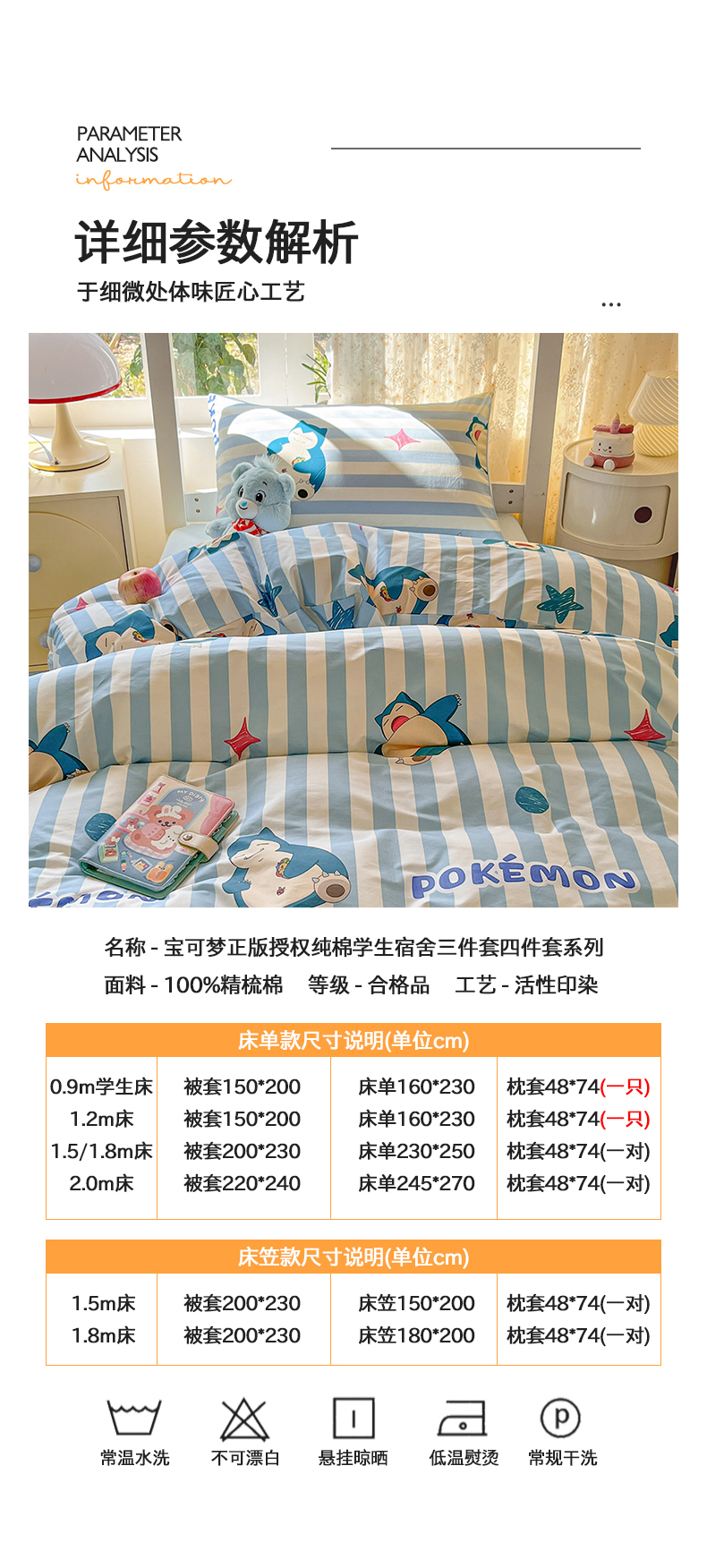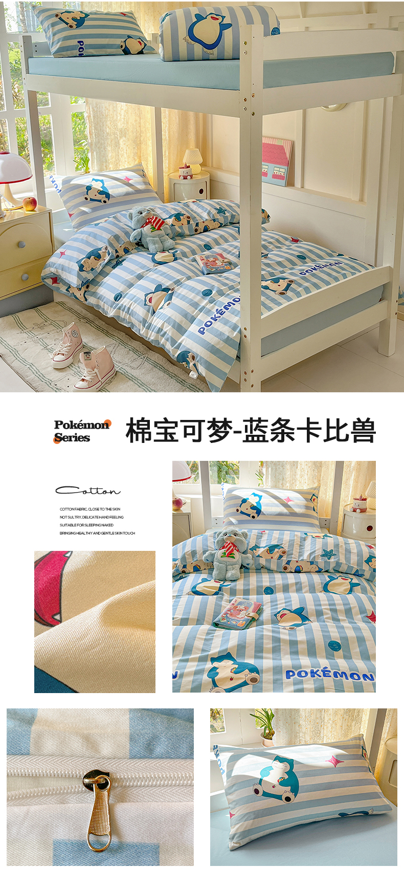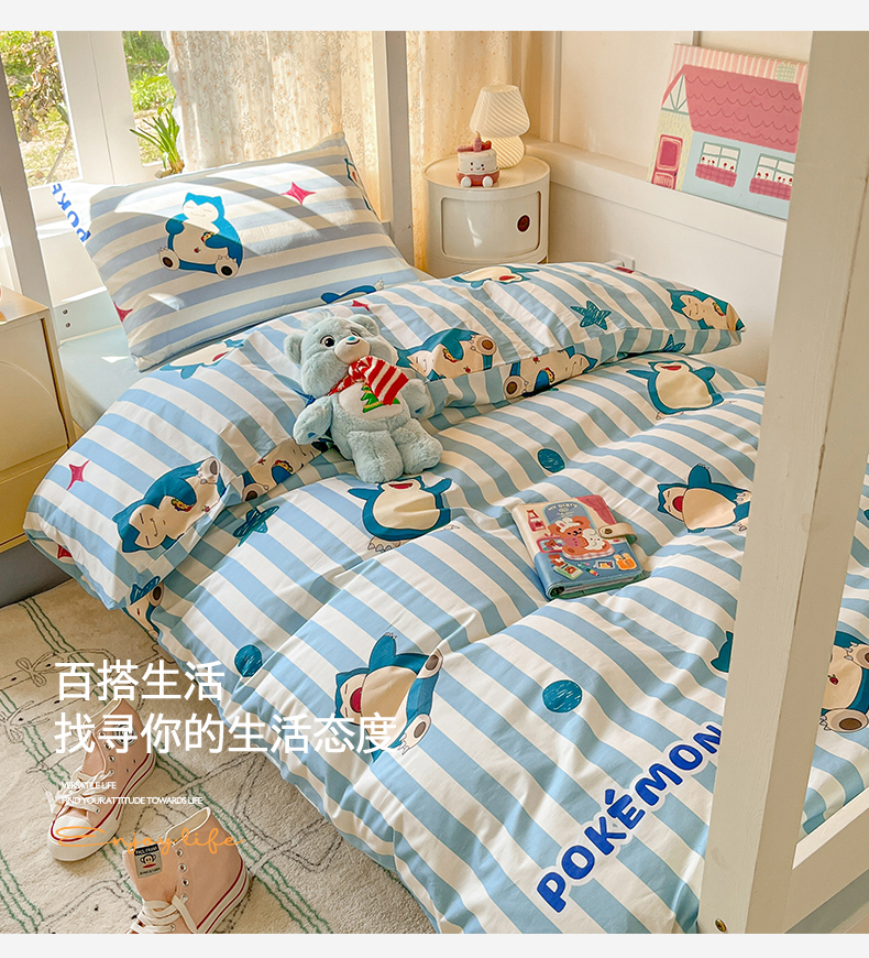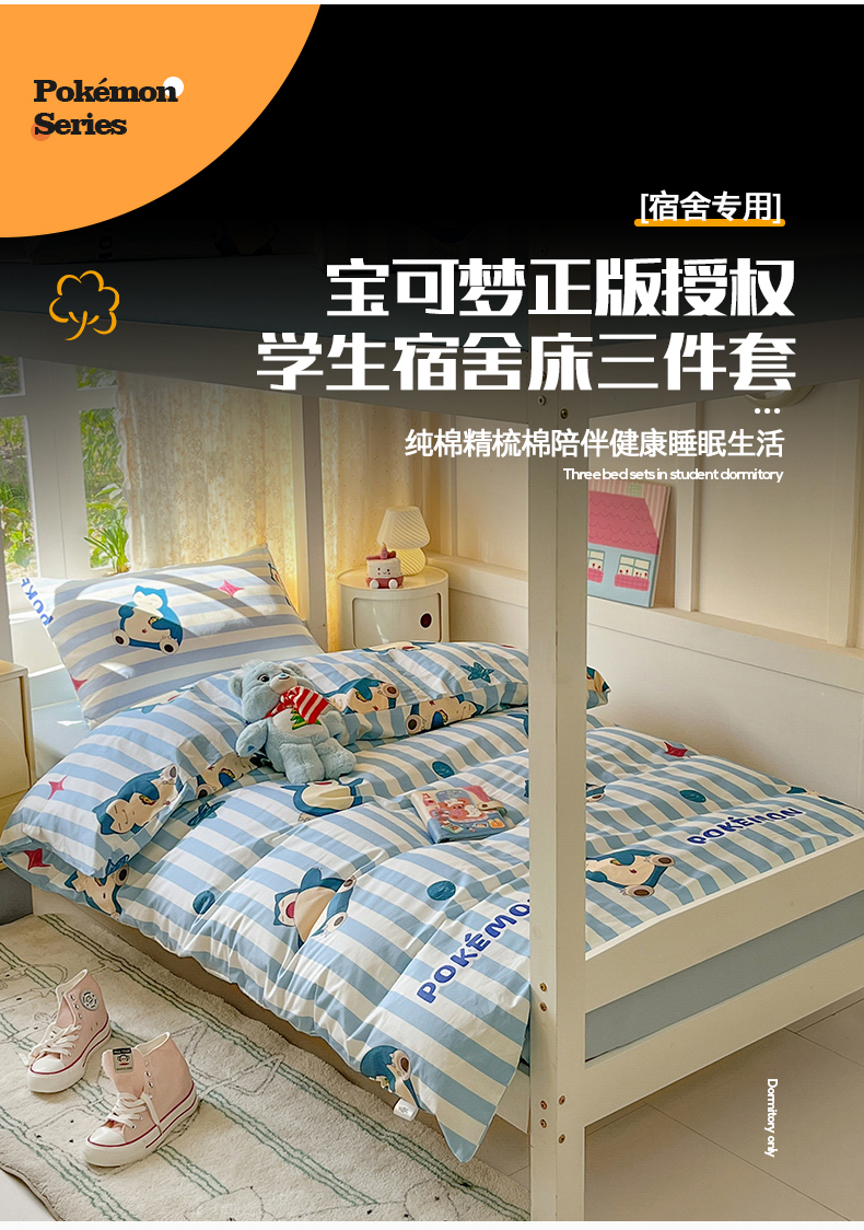 当前位置: 91家纺网 > 商品网购 > 床品套件 > 四件套 > 全棉普通四件套 > 金爱家 2025新款宝可梦正版授权纯棉卡通皮卡丘学生宿舍三件套四件套系列 棉宝可梦-蓝条卡比兽