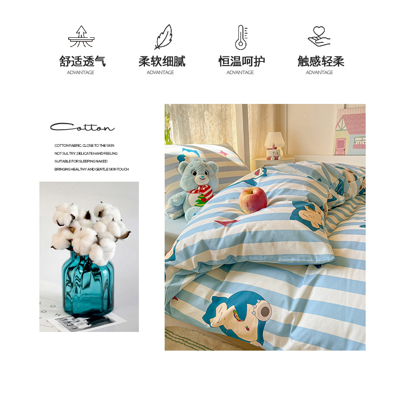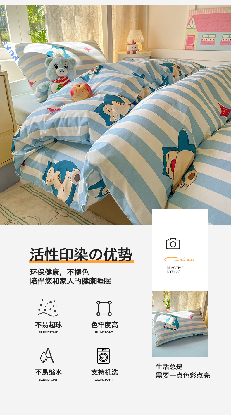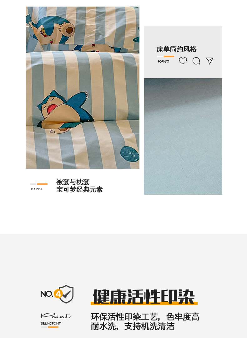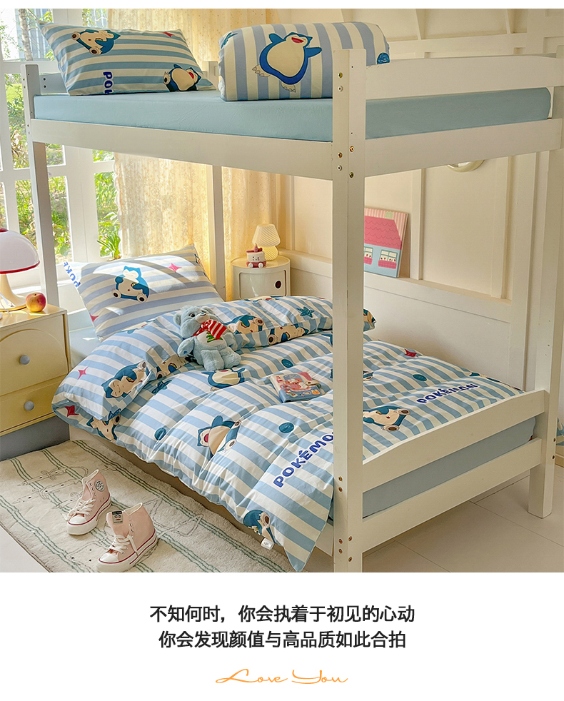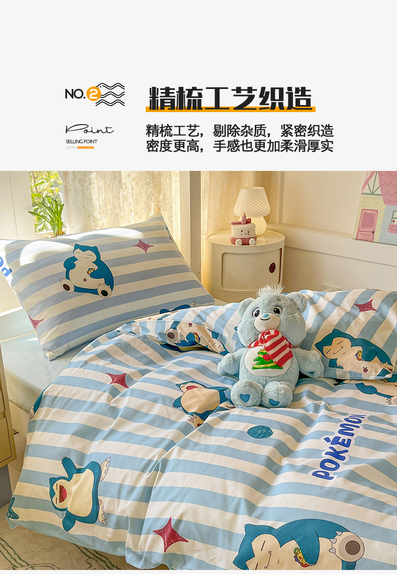 当前位置: 91家纺网 > 商品网购 > 床品套件 > 四件套 > 全棉普通四件套 > 金爱家 2025新款宝可梦正版授权纯棉卡通皮卡丘学生宿舍三件套四件套系列 棉宝可梦-蓝条卡比兽