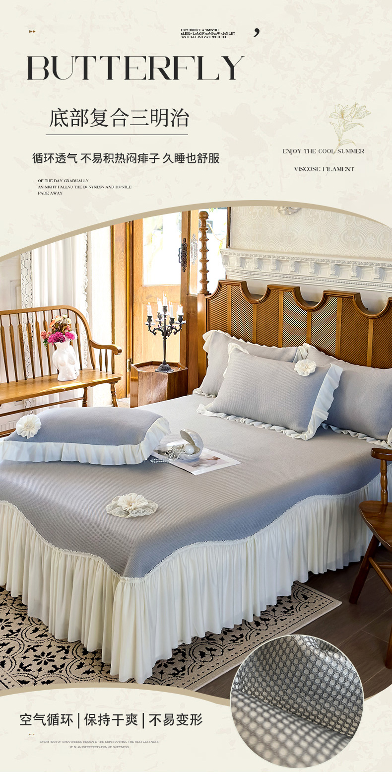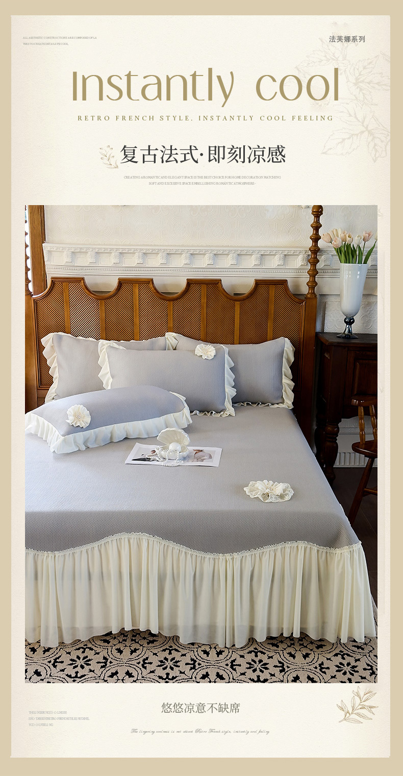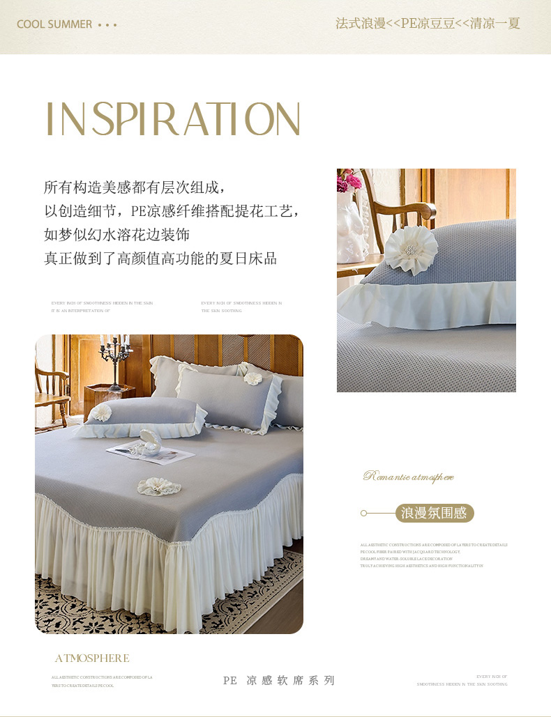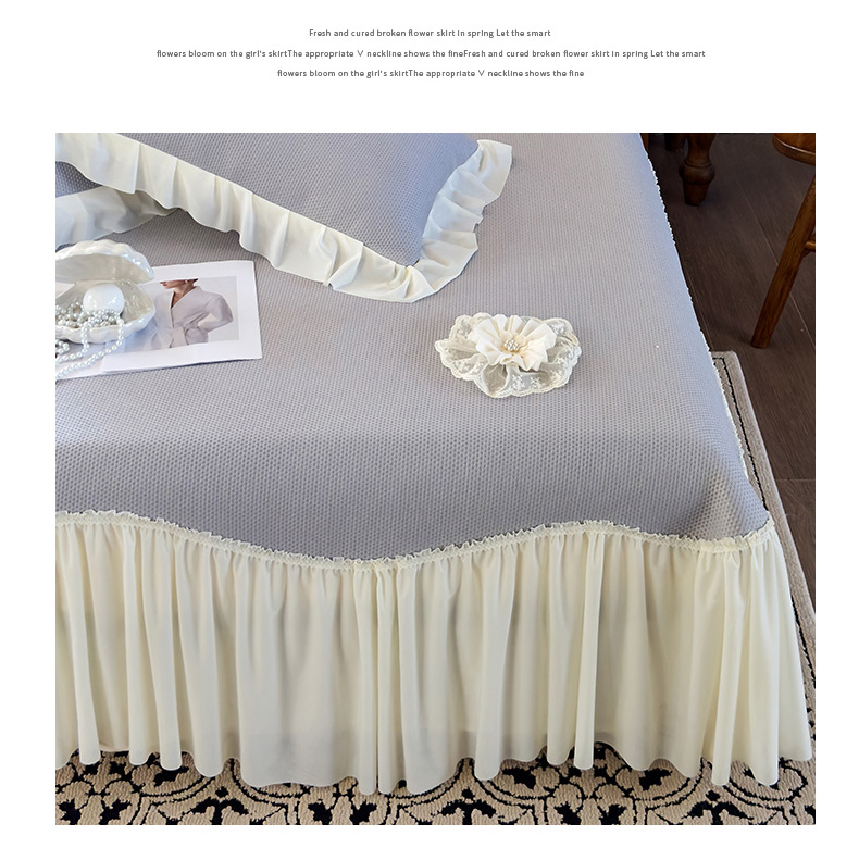 (总)乐朵家居 2026春夏 23-2觅彩 锦棉 蕾丝床裙,豆沙色,灰色,蓝色,绿色,奶白色,玉色