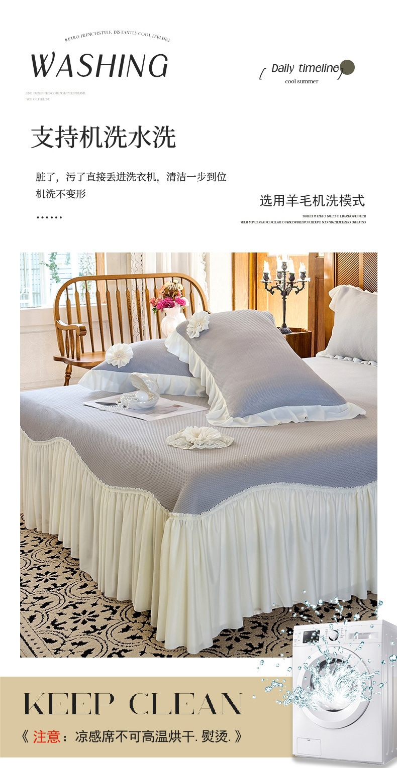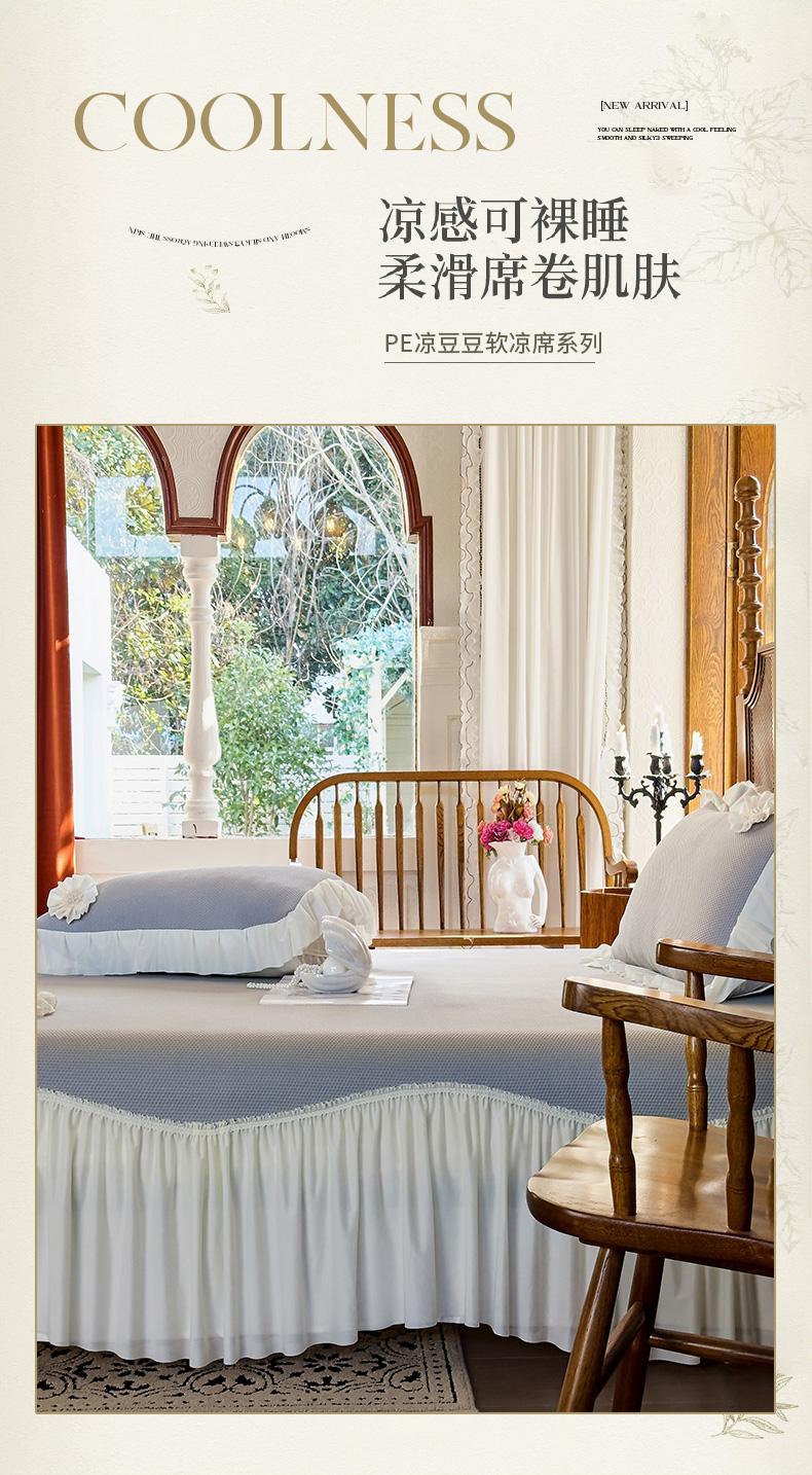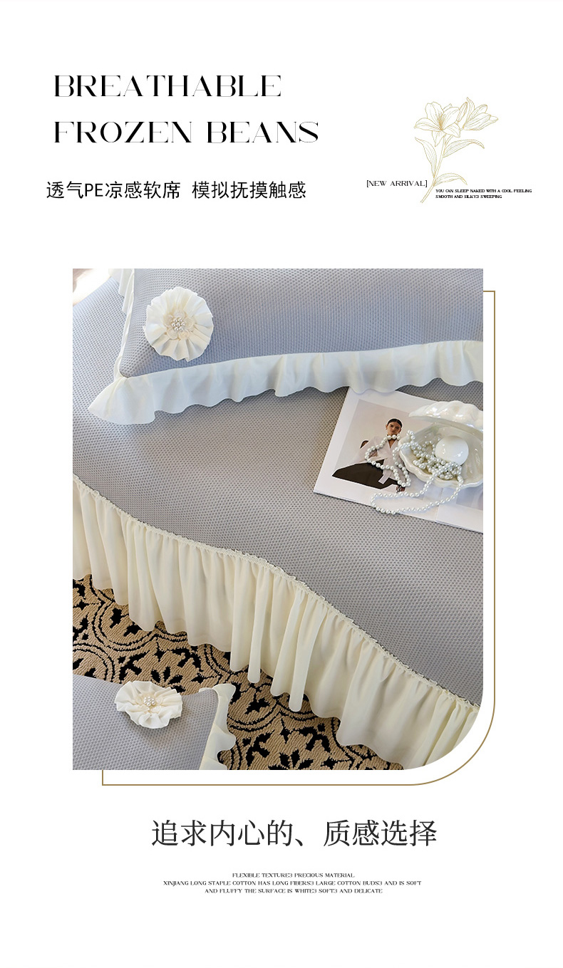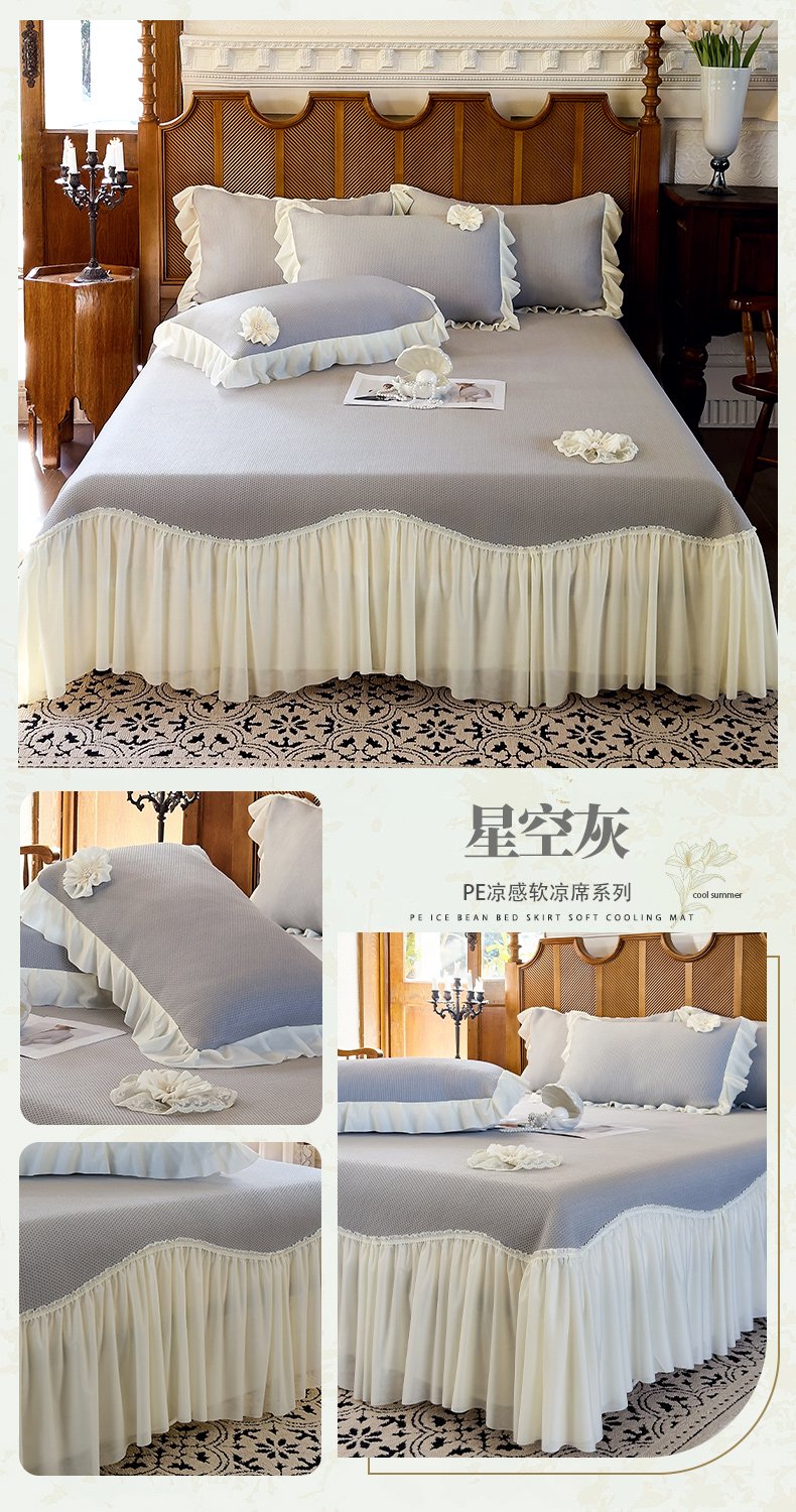 (总)乐朵家居 2026春夏 23-2觅彩 锦棉 蕾丝床裙,豆沙色,灰色,蓝色,绿色,奶白色,玉色