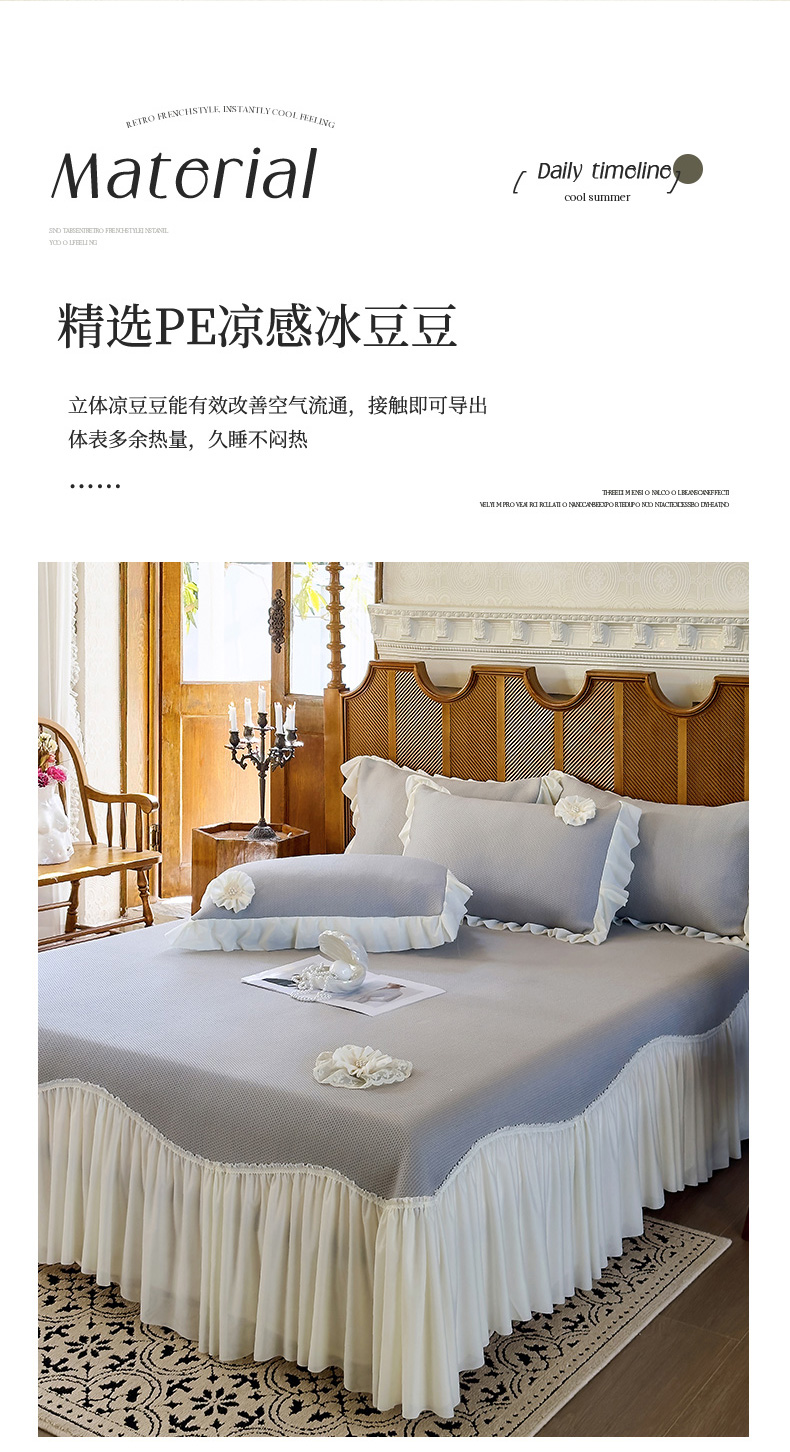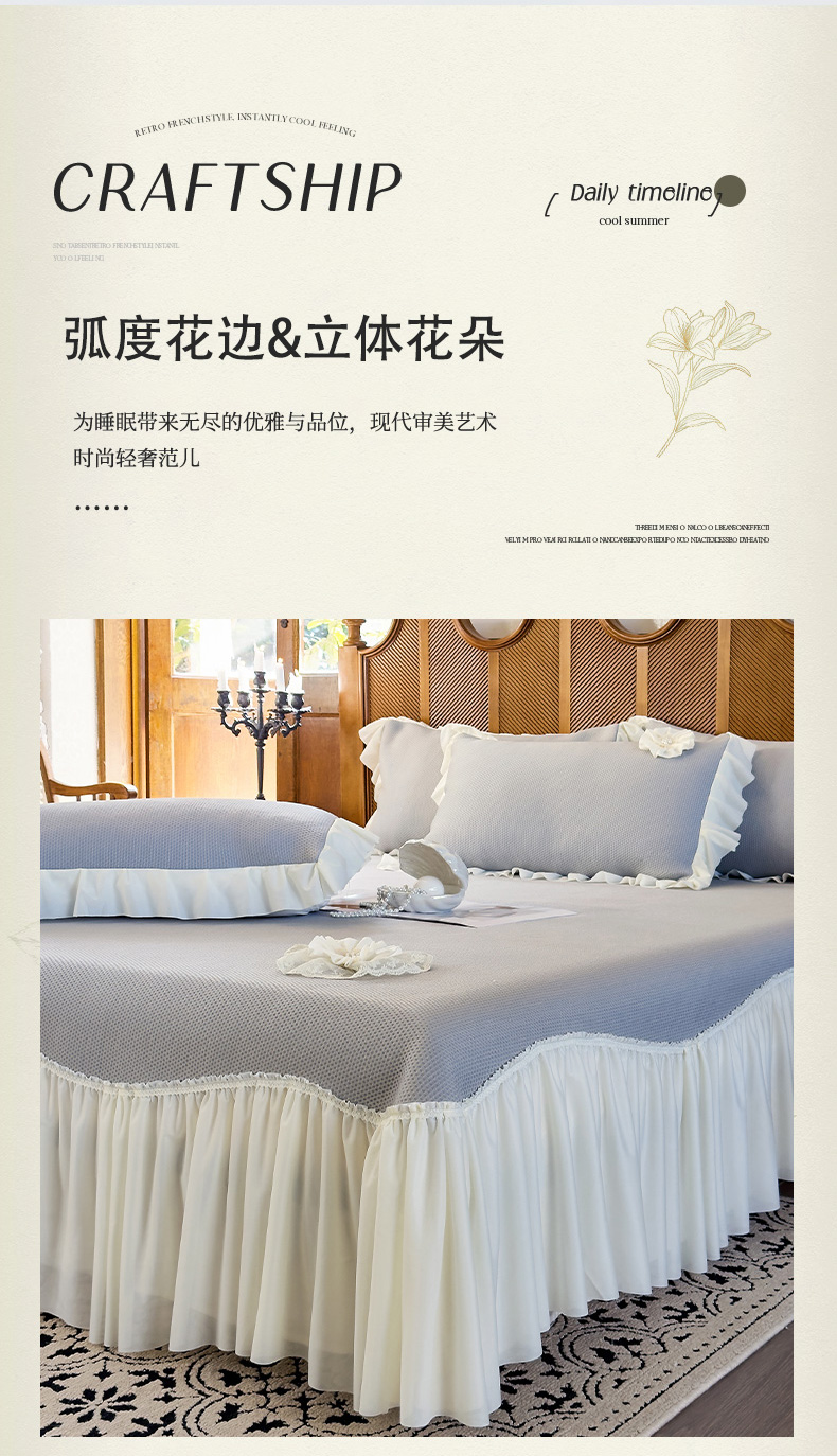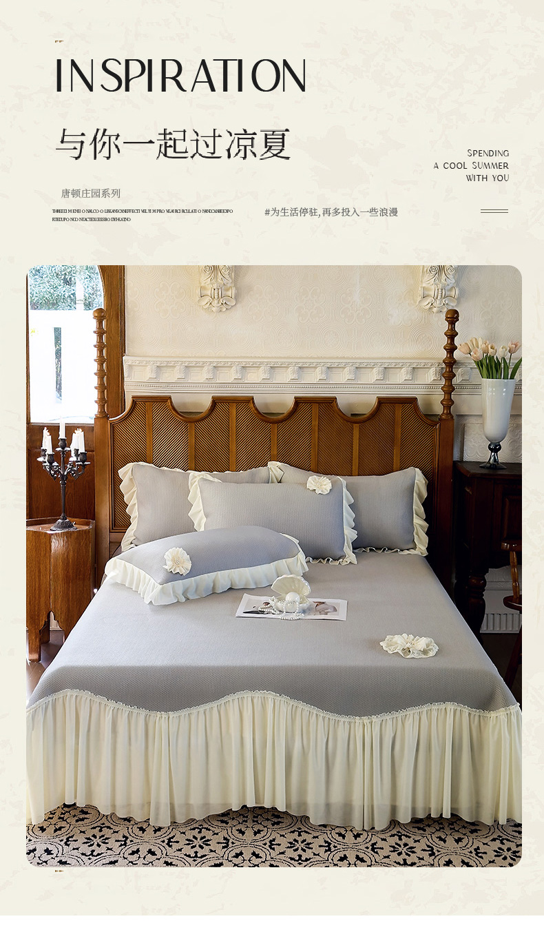 (总)乐朵家居 2026新款 25-3郁金香 天丝缎蕾丝床裙+可配空调被,绿,豆沙,奶白,灰,紫,卡其