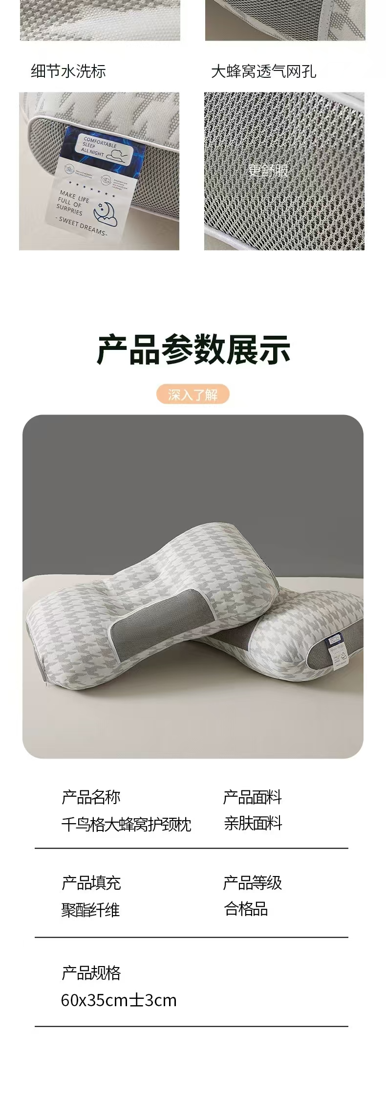 当前位置: 91家纺网 > 商品网购 > 枕头/枕芯/保健枕/颈椎枕 > 佳尚枕芯 2025新款千鸟格大蜂窝spa枕头枕芯 千鸟格提花spa枕 40x60cm/只-中枕