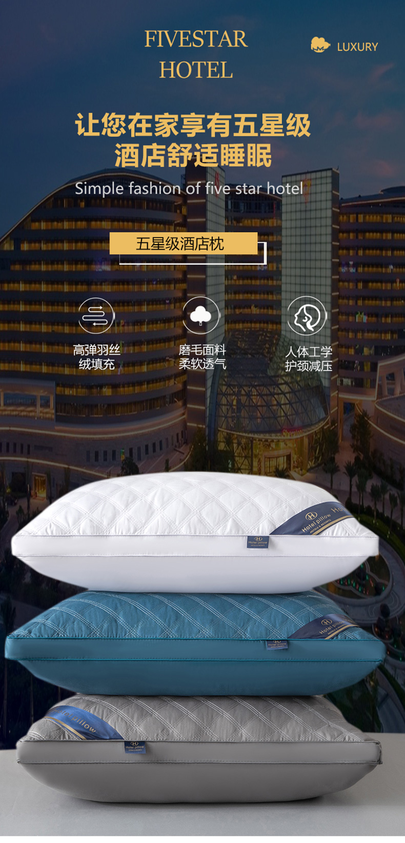 当前位置: 91家纺网 > 商品网购 > 枕头/枕芯/保健枕/颈椎枕 > 佳尚枕芯 2025新款三格线亲肤羽丝棉酒店枕枕头枕芯 蓝色 48x74cm/只 中枕