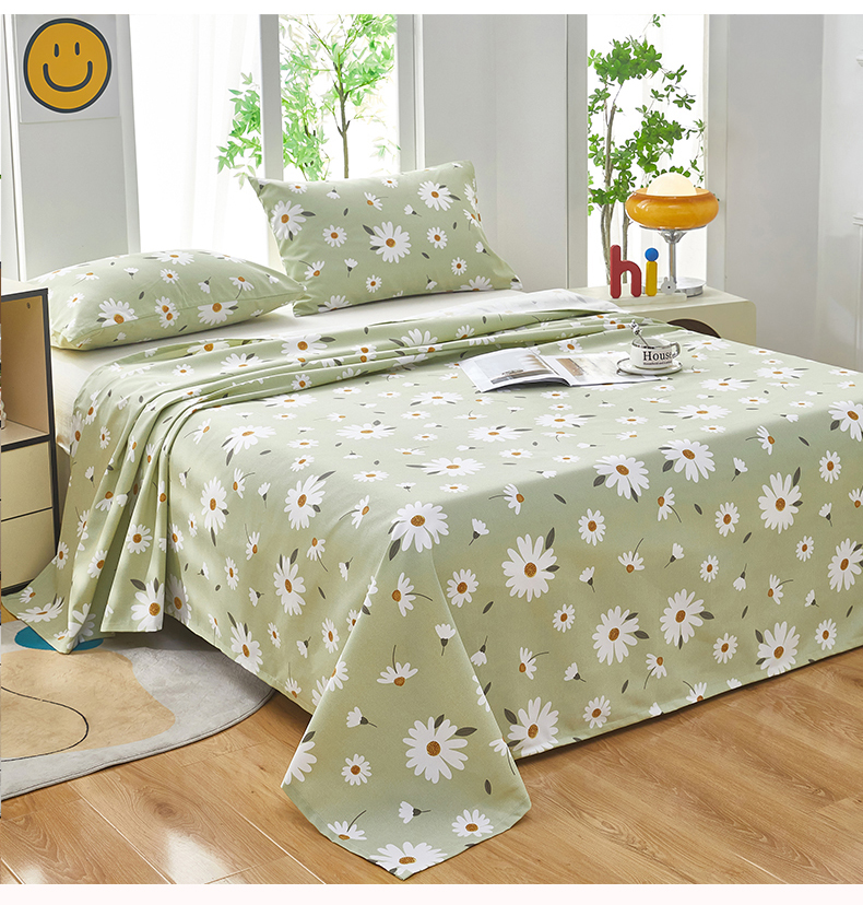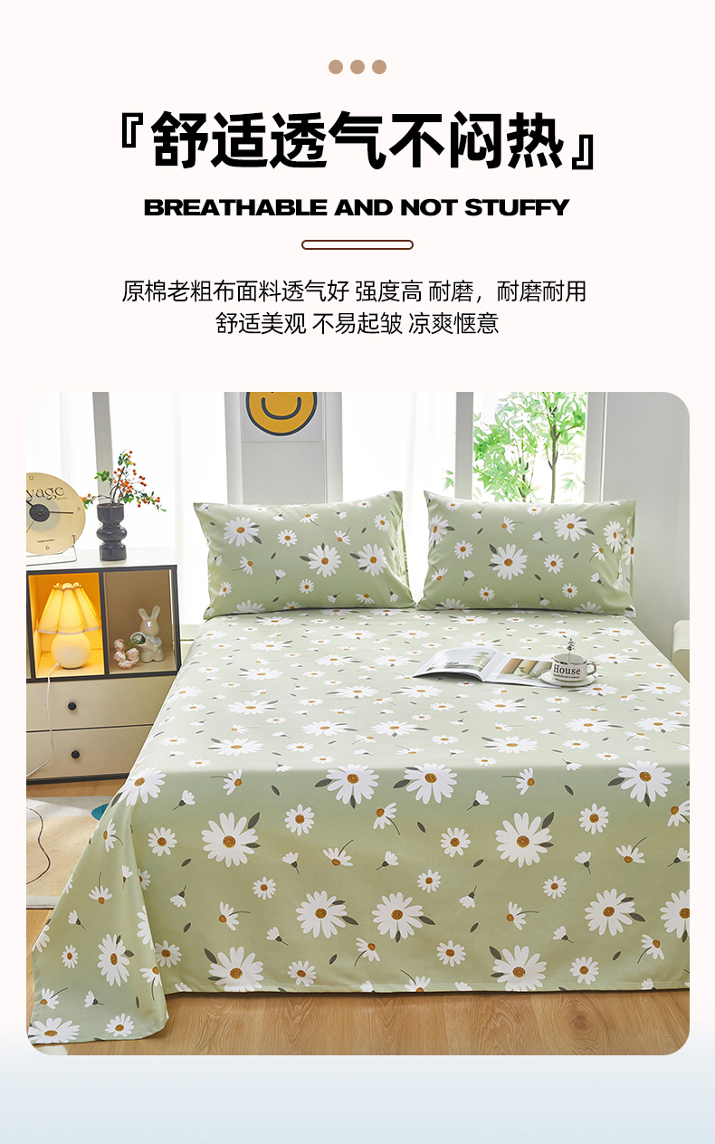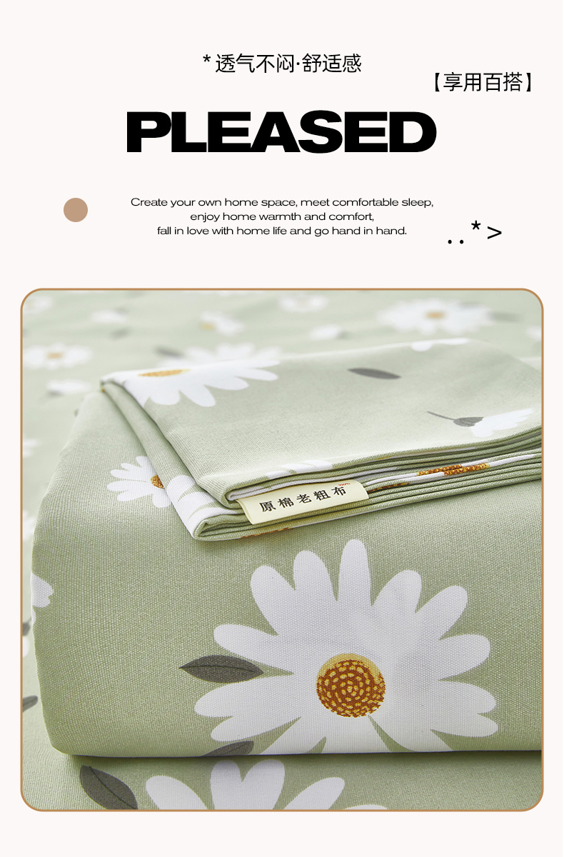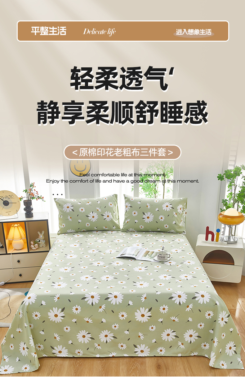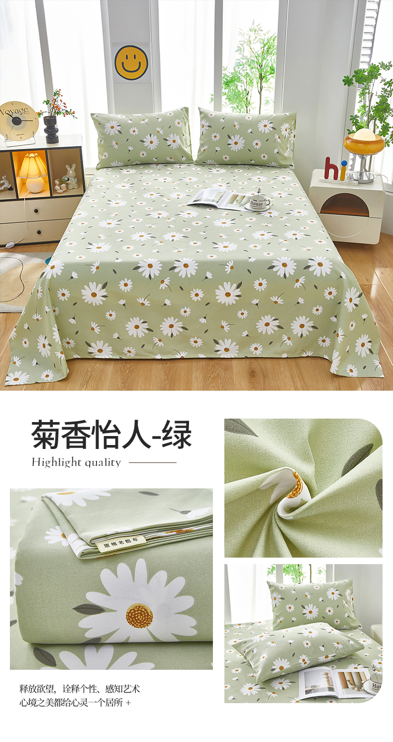 商品名称:雲归梦 2025新款原棉老粗布床单席子凉席印花三件套 菊香怡人-绿