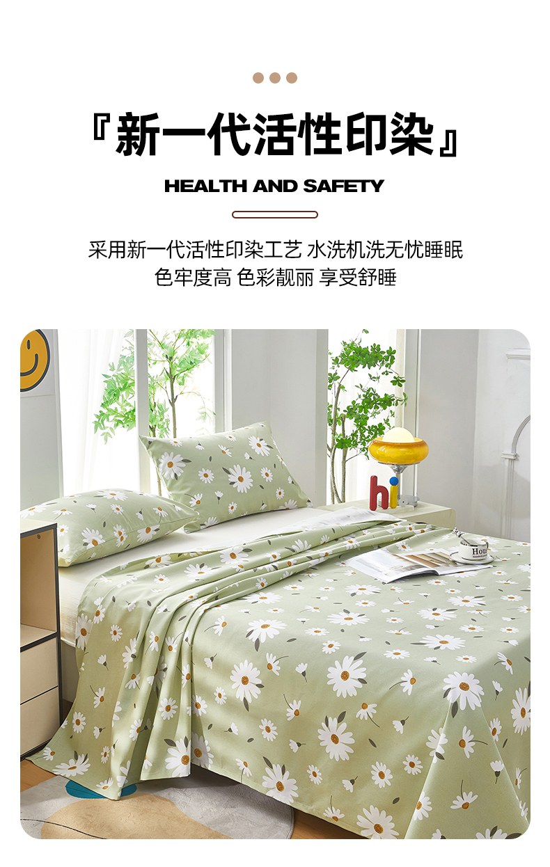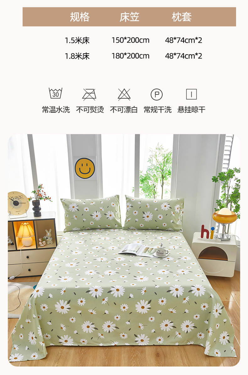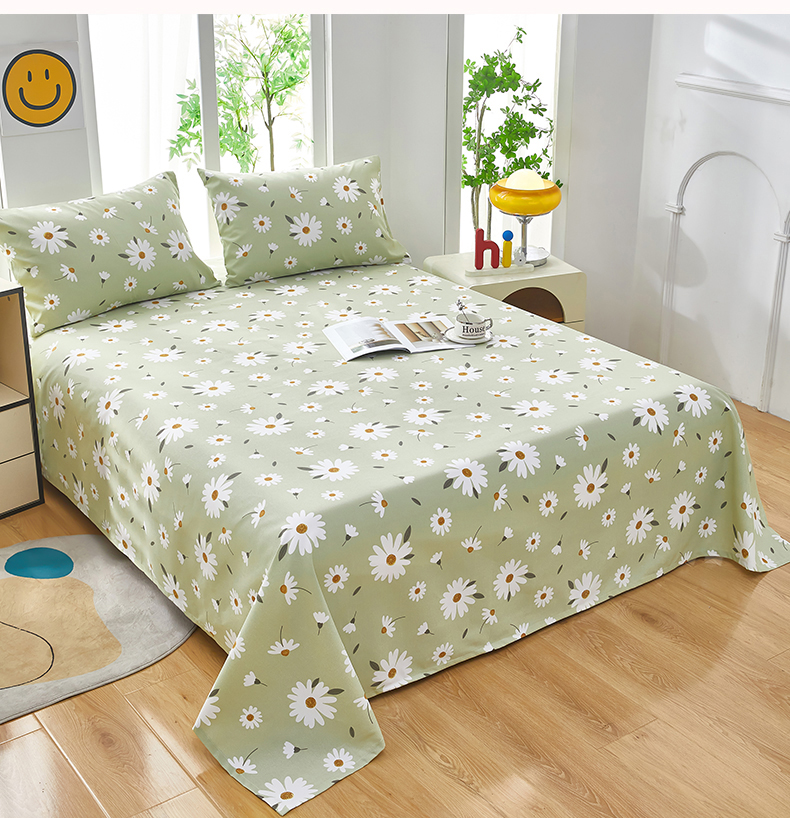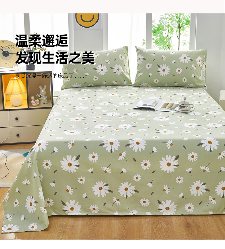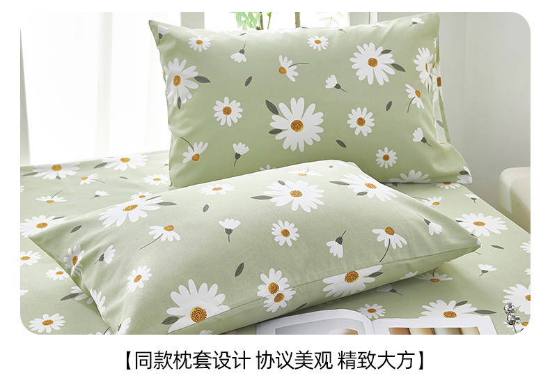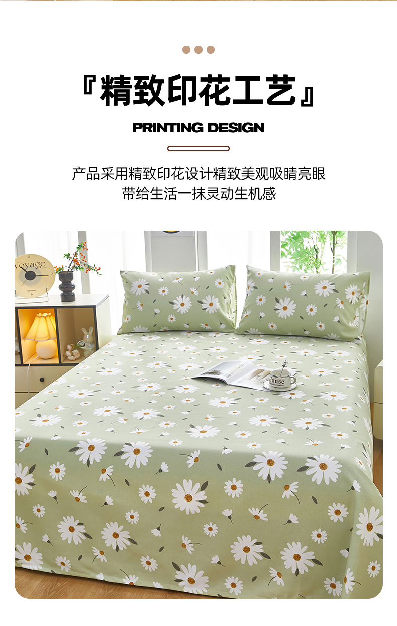 商品名称:雲归梦 2025新款原棉老粗布床单席子凉席印花三件套 菊香怡人-绿