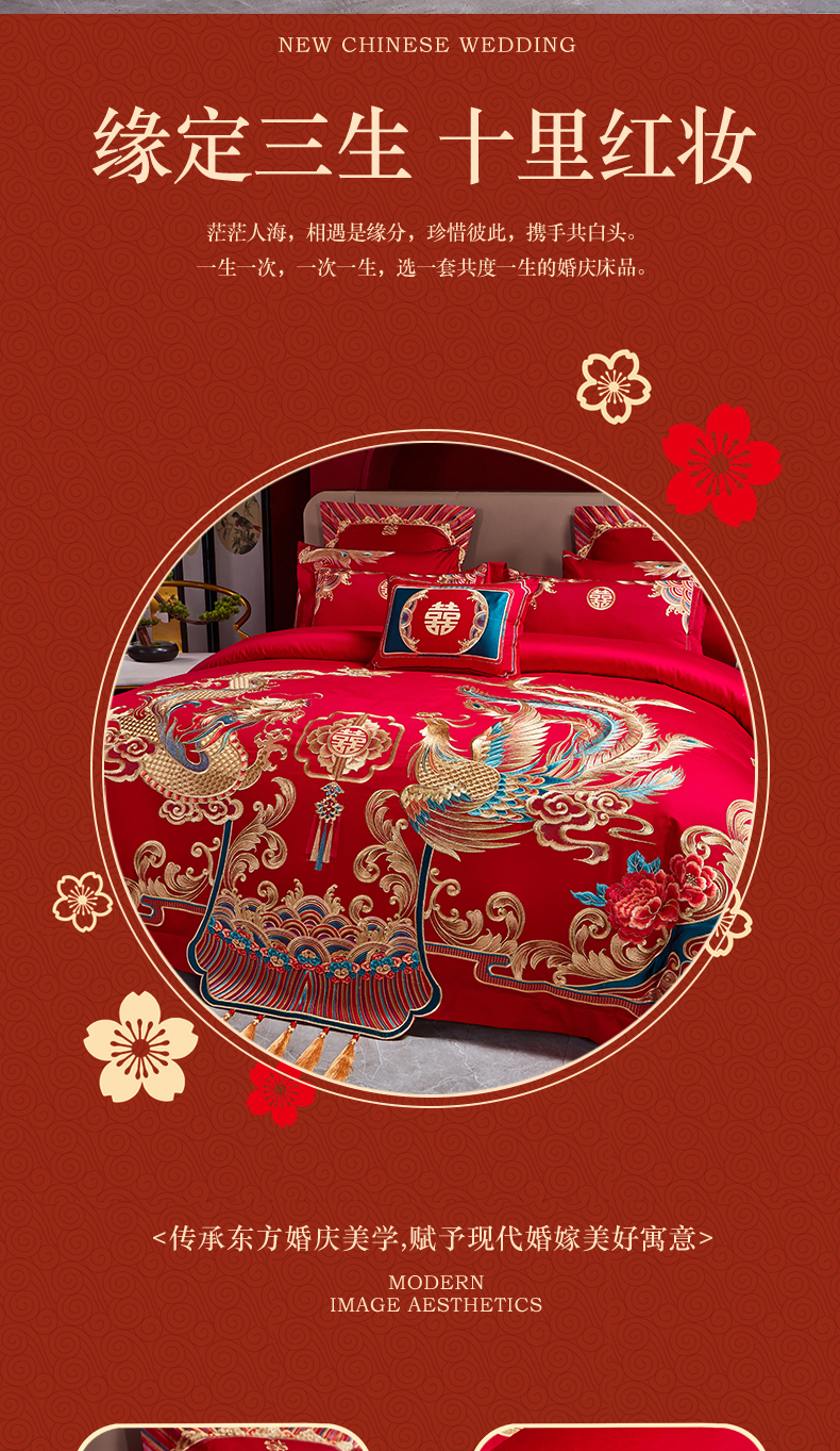 当前位置: 91家纺网 > 商品网购 > 床品套件 > 多件套 > 多件套 > 用心 2025新款长绒棉刺绣新中式婚庆多件套系列 锦绣华章