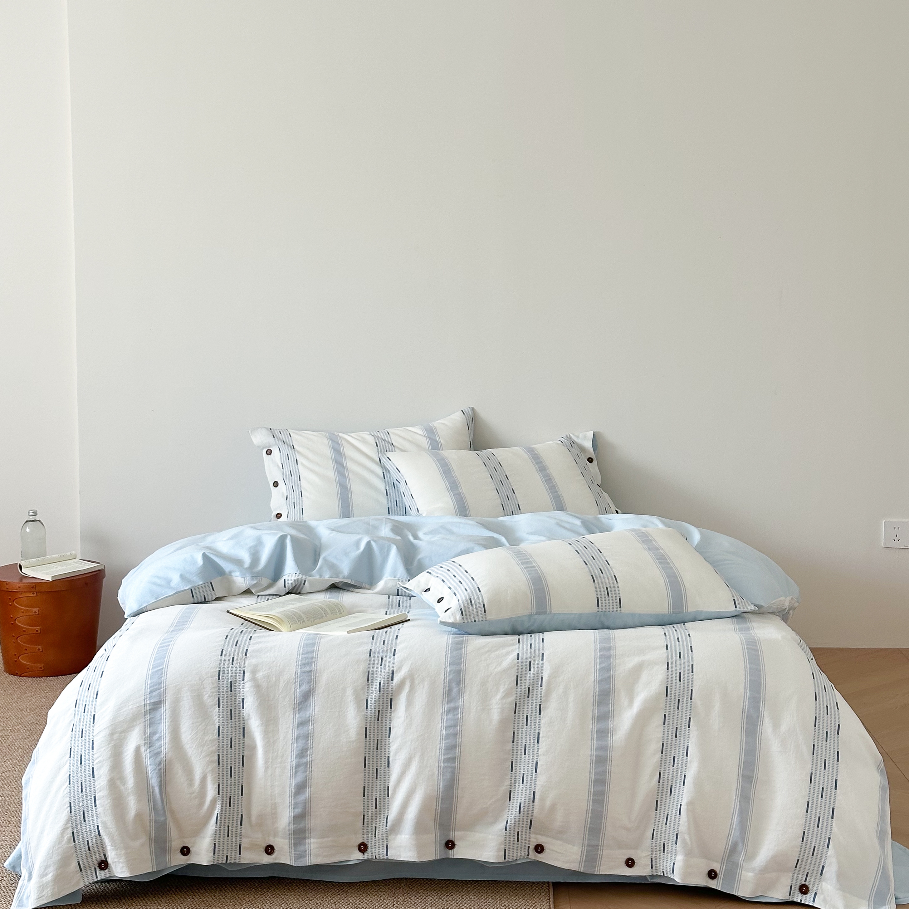 当前位置: 91家纺网 > 商品网购 > 床品套件 > 四件套 > 水洗棉四件套 > 曼布缇 2025新款全棉色织提花水洗棉四件套套件(券后控价268/288,308起) 格调-纯净蓝