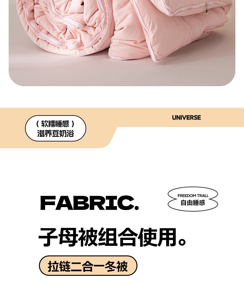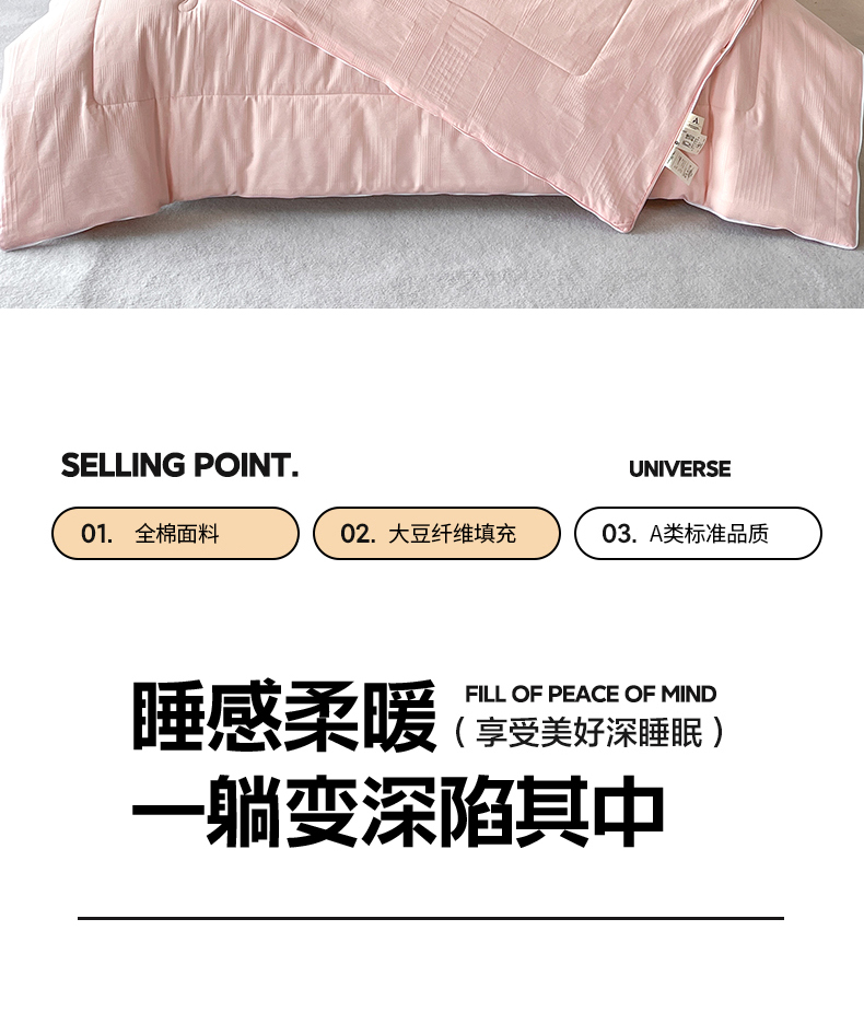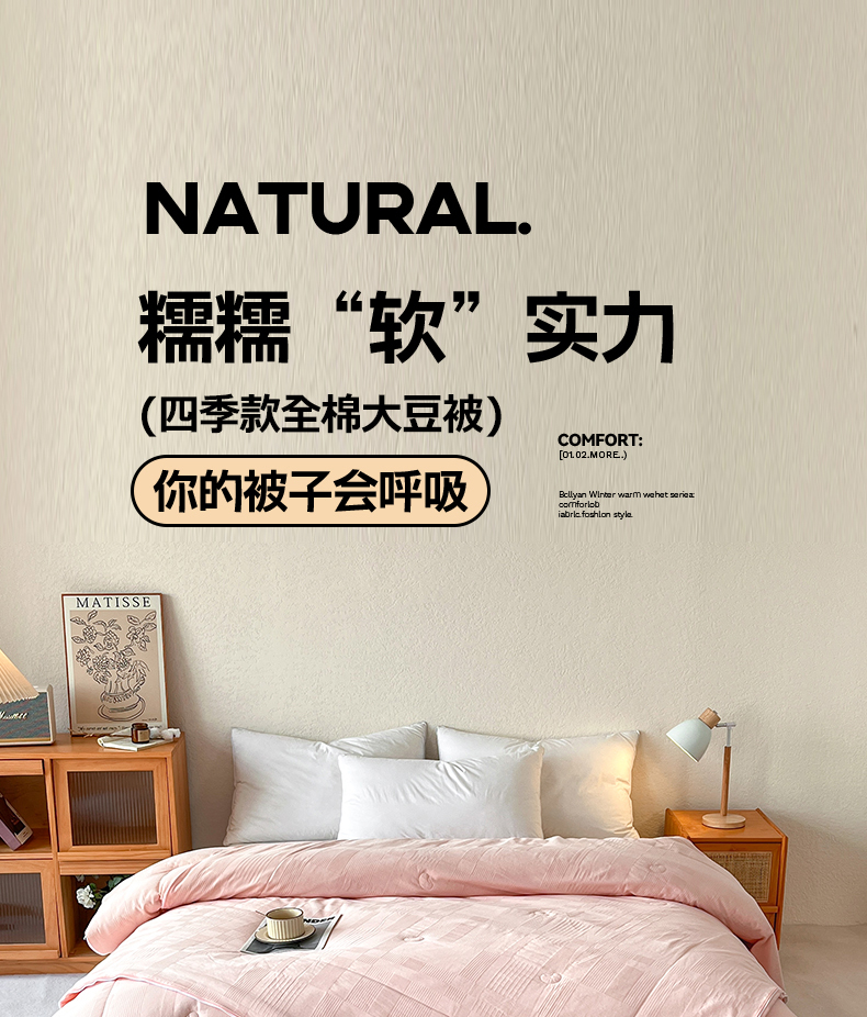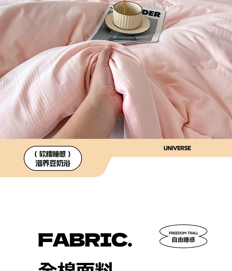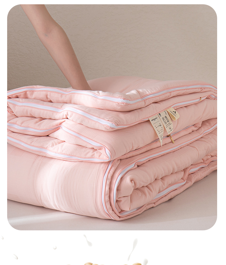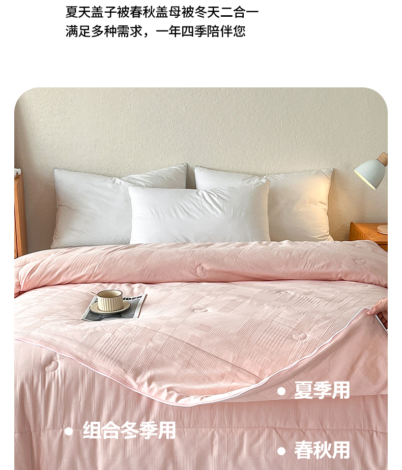 • 91家纺网 家纺一手货源 找家纺 鸣升家纺 2025新款四季款全棉大豆被 菽菽木兰-粉