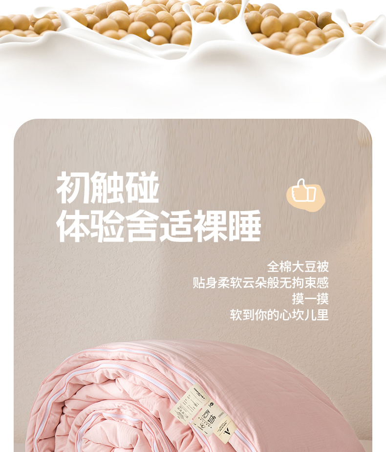 鸣升家纺 2025新款四季款全棉大豆被 菽菽木兰-粉