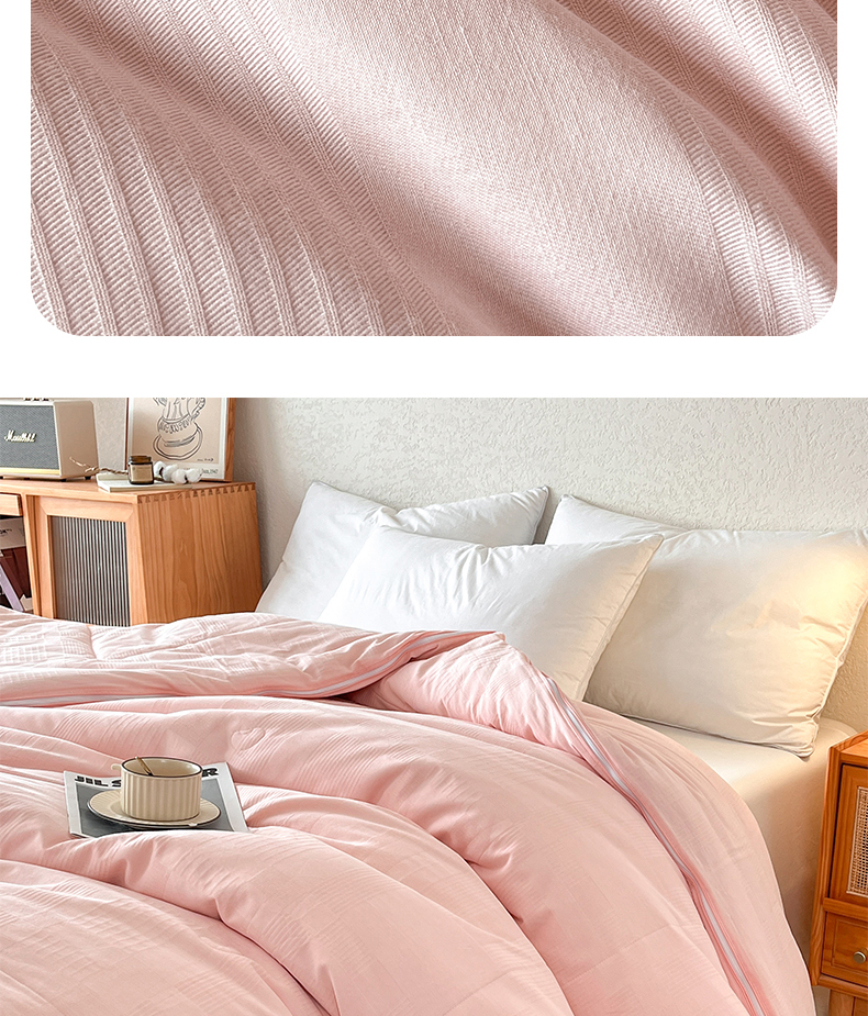 (总)鸣升家纺 2026新款全棉色织水洗棉贝壳边棉花空调被夏凉被夏被四件套,果绿,姜黄,莎粉,天空蓝,月光灰,组合图仅供参考不可下单