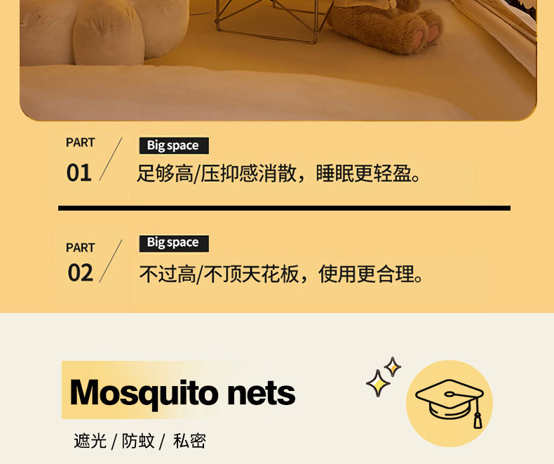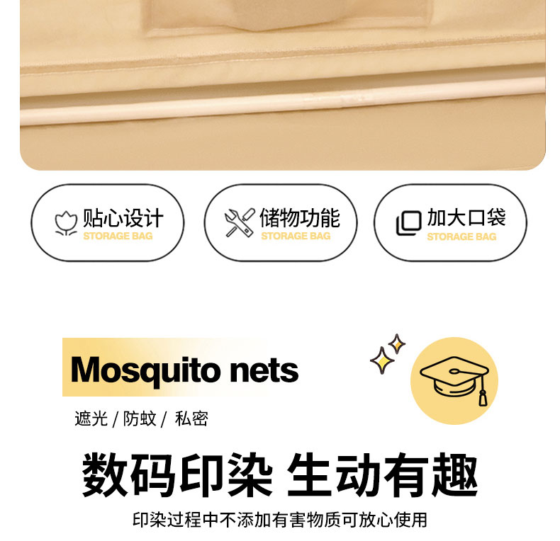 商品名称:水妙家纺 2025年新款强遮光学生上下铺床帘蚊账 干饭熊宝